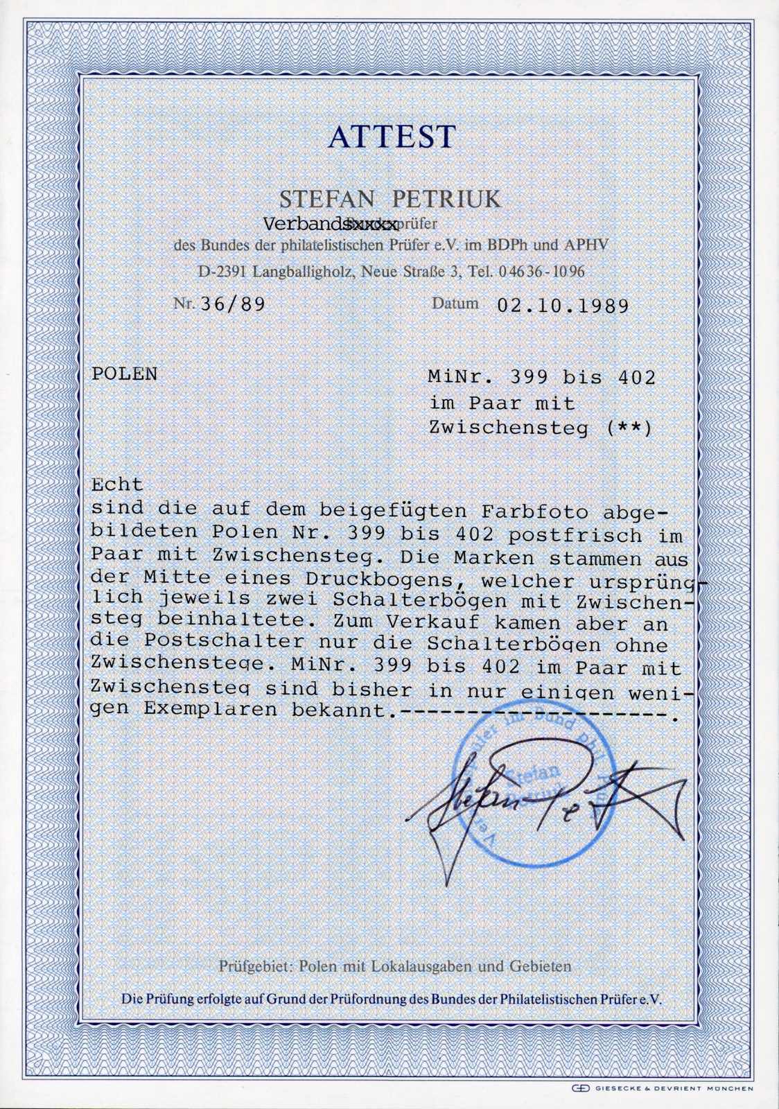 je nach der sechsten waagerechten Reihe getrennt und 3 bzw. 2 Einzelwerte fehlen, die Bögen zu 2 Zt. + 4 Zt. und 3 Zt. + 5 Zt. sind ungetrennt und es fehlen nur je 2 Einzelwerte, als ungetrennter Bogensatz sehr selten, extrem selten angeboten, jeder