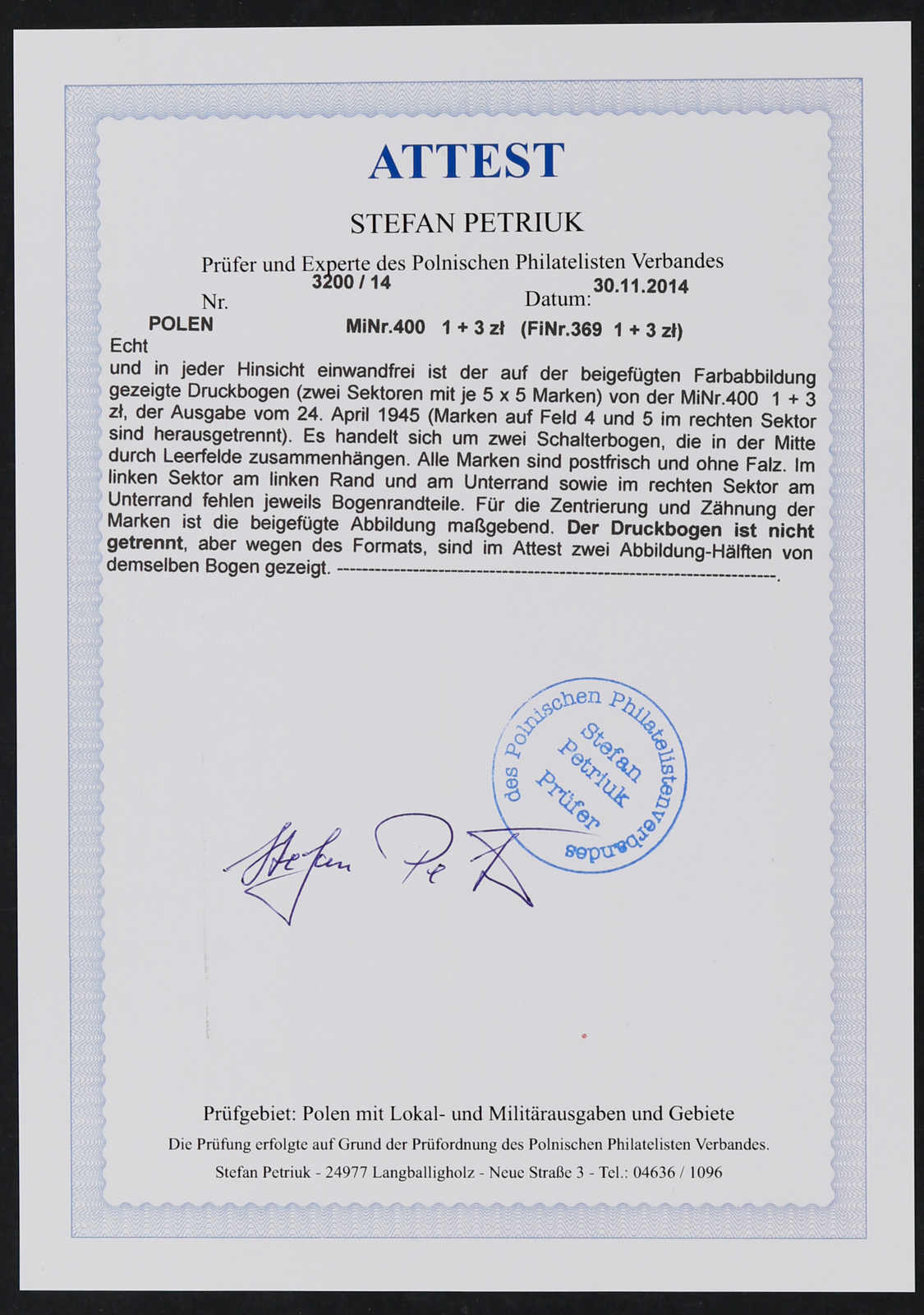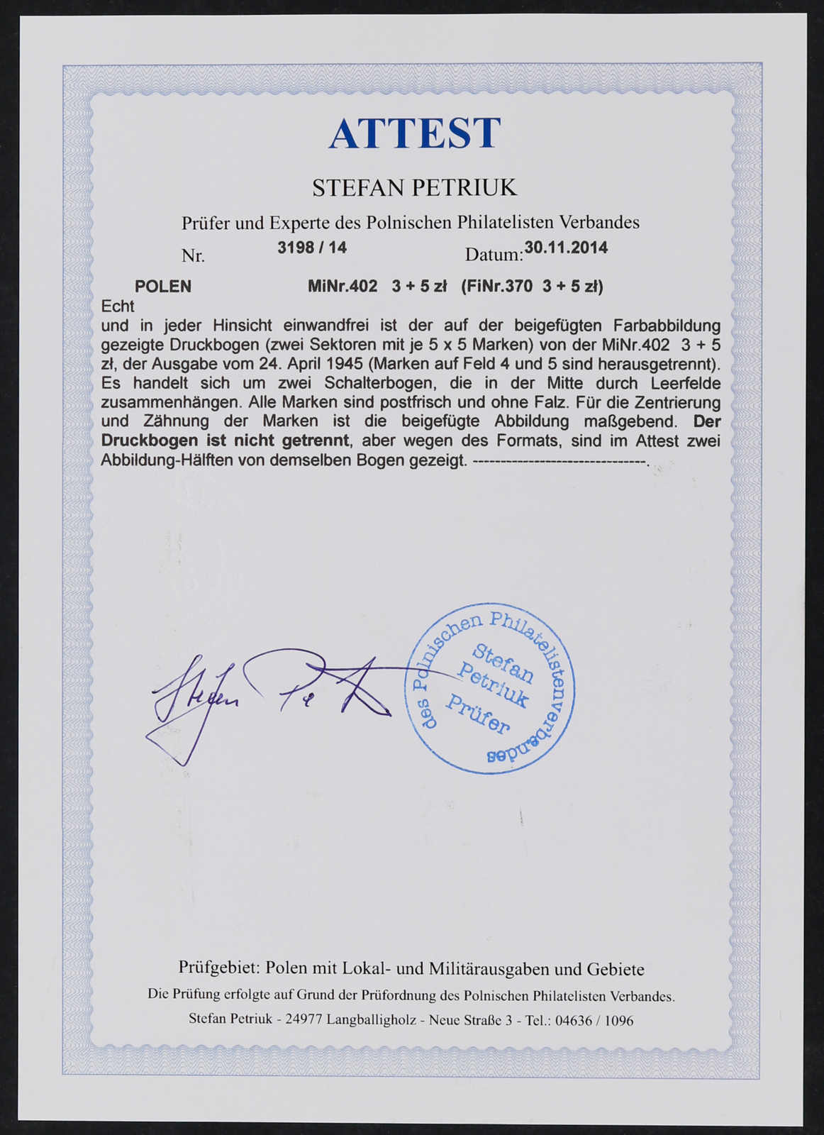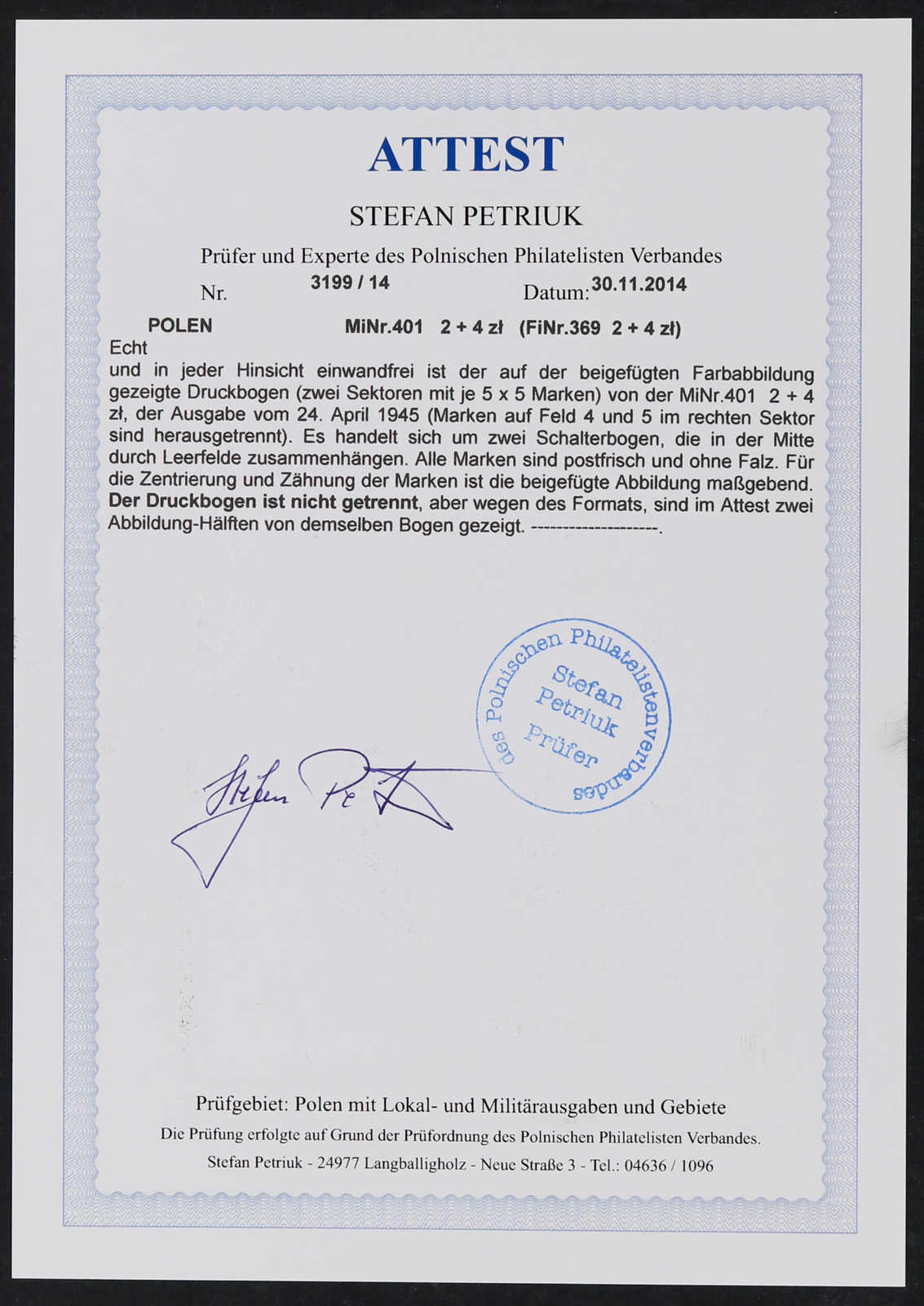 Bogen mit Fotoattest Petriuk (Image) (imagea)