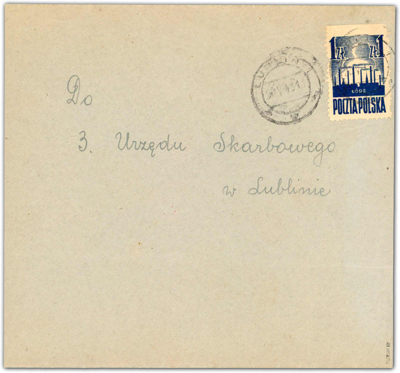 1945, 1 Zt. Befreiung von Lodz und Warschau dunkelblau, oben ungezähnt, als portogerechte Einzelfrankatur auf Ortsbrief, aufgegeben "LUBLIN 20.V.45", adressiert an das Finanzamt, rückseitig mit Zensur, einwandfrei, geprüft Petriuk BPP (Image)