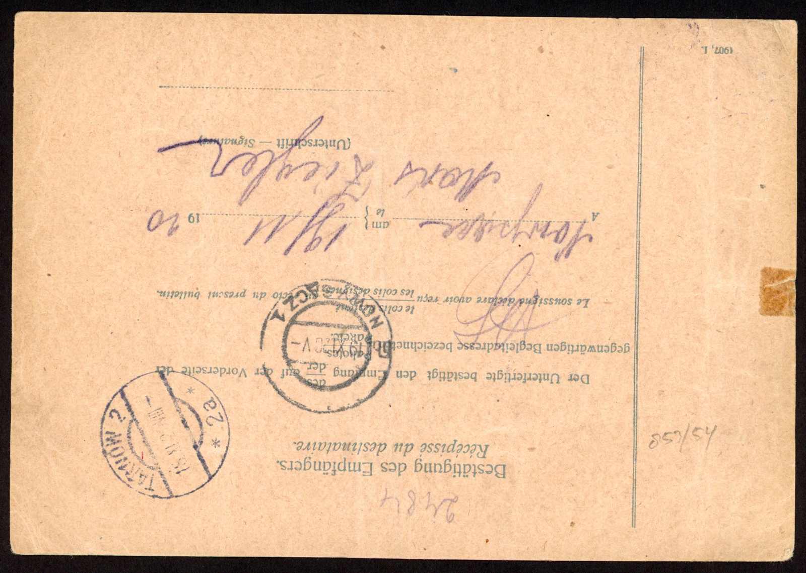 Ankunftsstempel "JEDLINSK 13.9.20", sign. Vogels und Petriuk (Image)