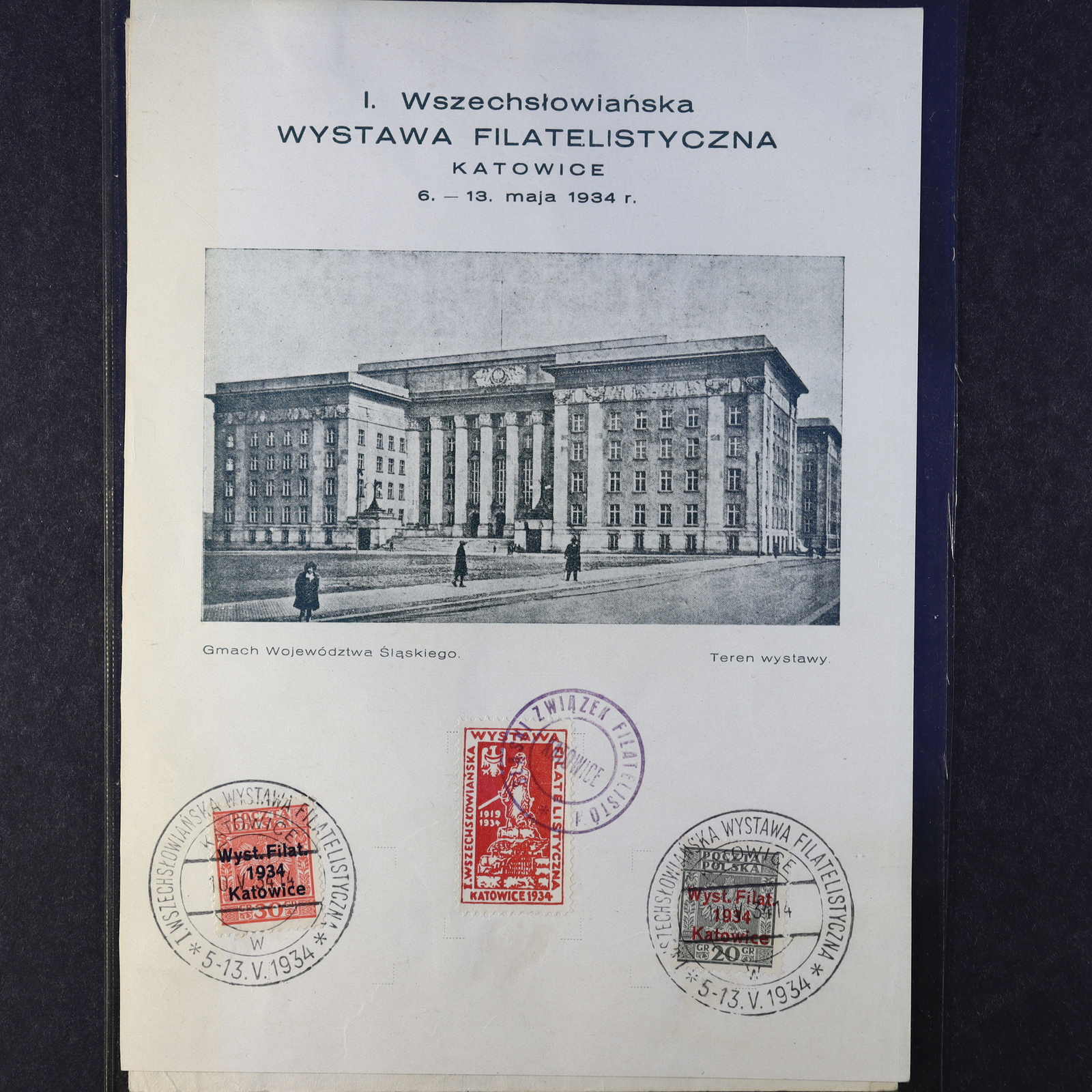 1933/34, 60 Gr. Briefmarkenausstellung Thorn, 20 Gr. und 30 Gr. Briefmarkenausstellung Kattowitz, mit Zusatzfrankatur je auf offiziellem Ausstellungsblatt mit allen Sonderstempeln, das Blatt aus 1933 waager. gefaltet, sonst saubere
