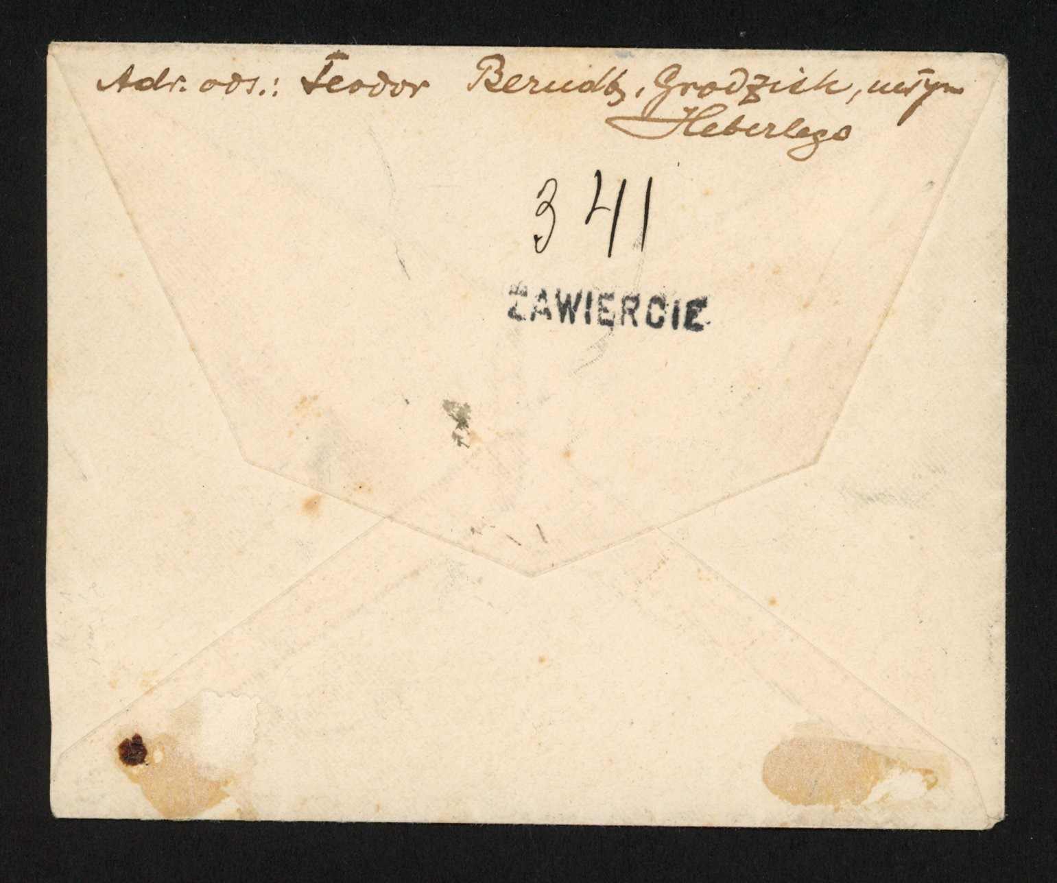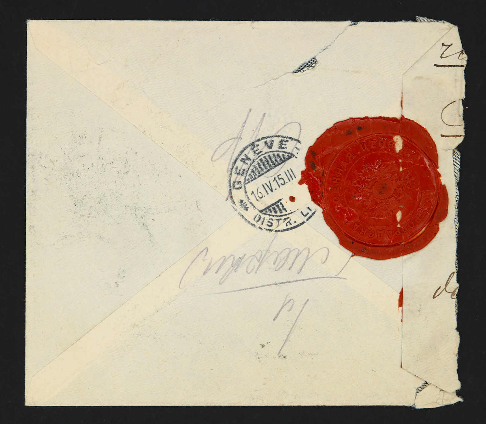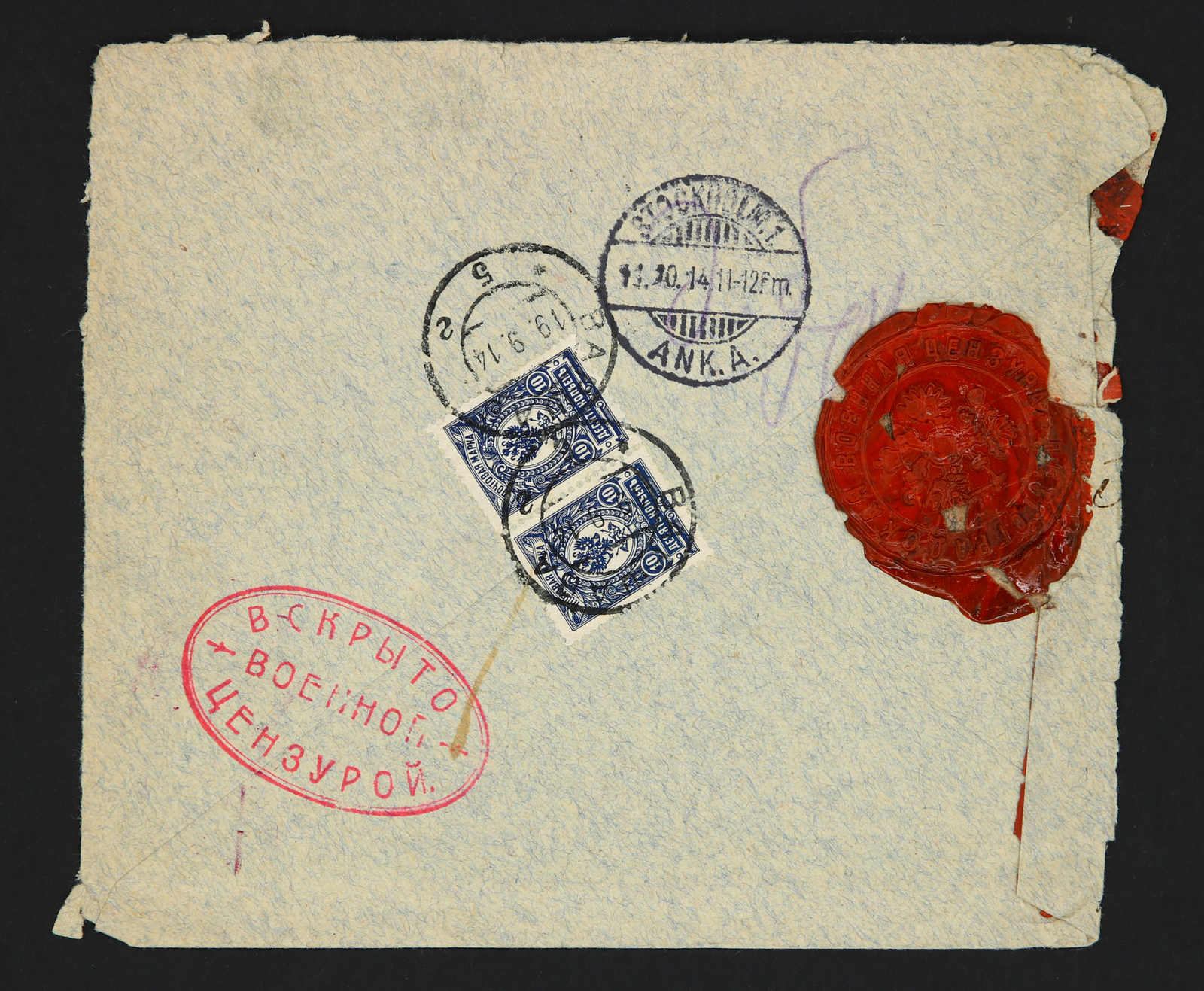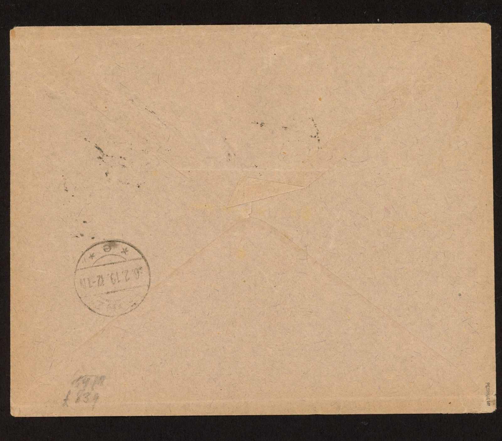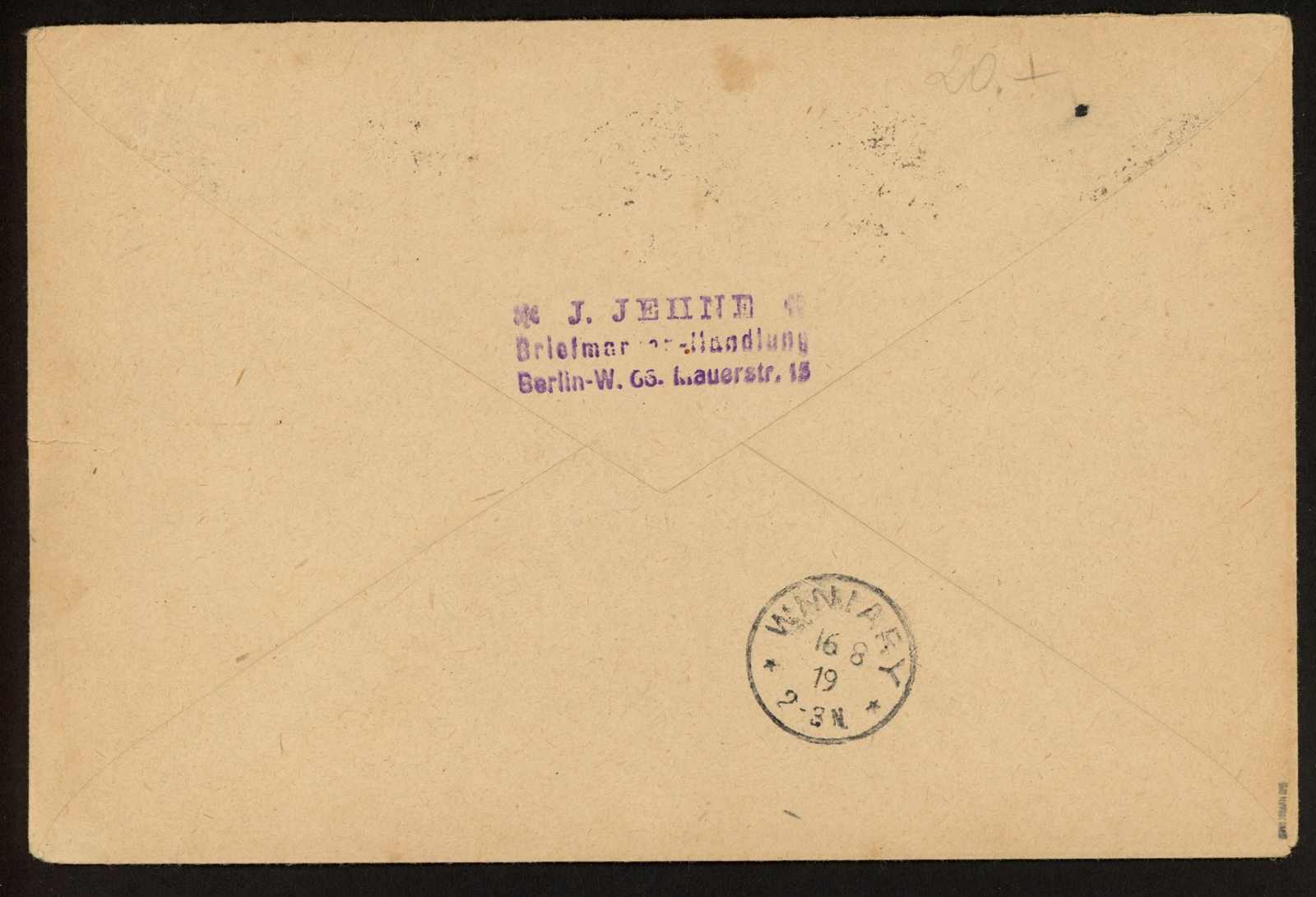 dreiseitig geöffnet, die Frankatur auf der Rückseite. Deutliche Alters- und Beförderungsspuren. Fotoattest Petriuk (Image) (imagea)