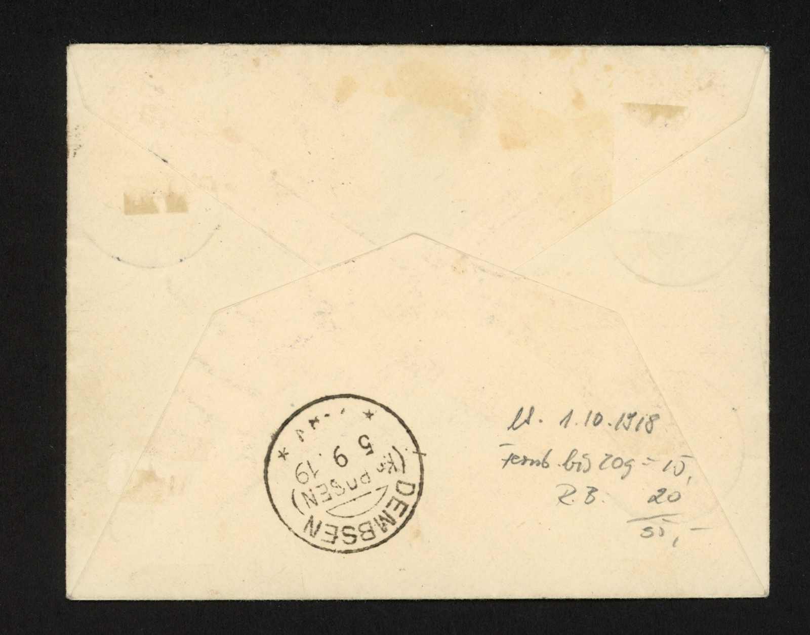 1919, kleiner Umschlag Einschreiben mit den 5 Aufdruckwerten, zus. 35 Fen. ab Posen O 5 4.9.19 nach Dembsen 5.9.19 Ankunft. Sign. Jungjohann BPP.