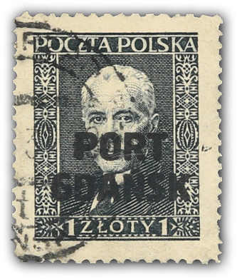 1929, 1 Zl. Präsident Moscicki schwarzgrau, gest. Einzelwert mit Aufdr. "PORT GDANSK" auf dem breit gestreiften Papier (ca. 13 Streifen), farbfrisch und üblich etwas rau gezähnt, sign. Schüler BPP, einwandfrei (ME 600,-) (Image)