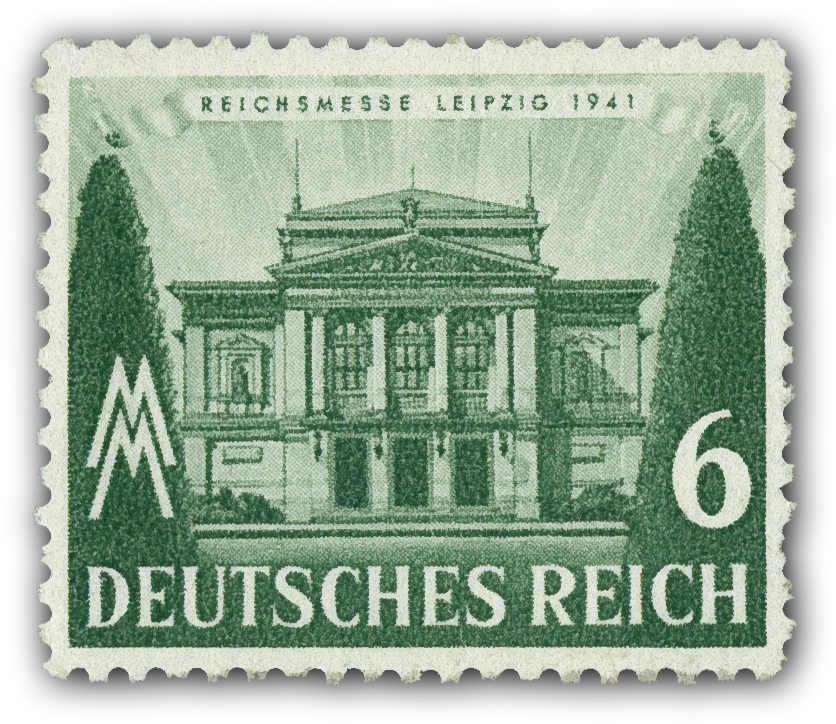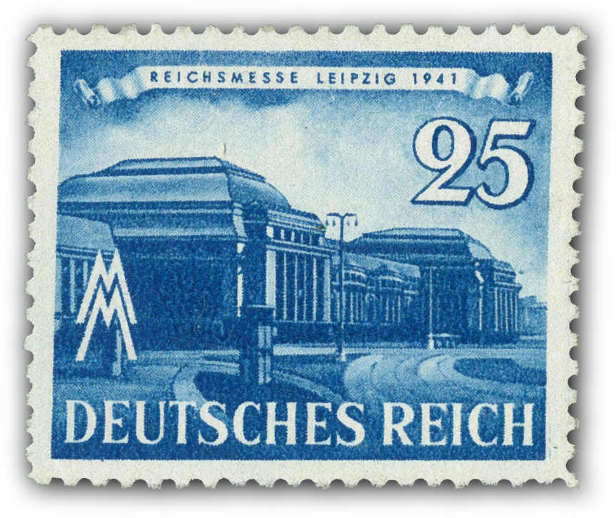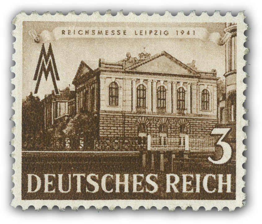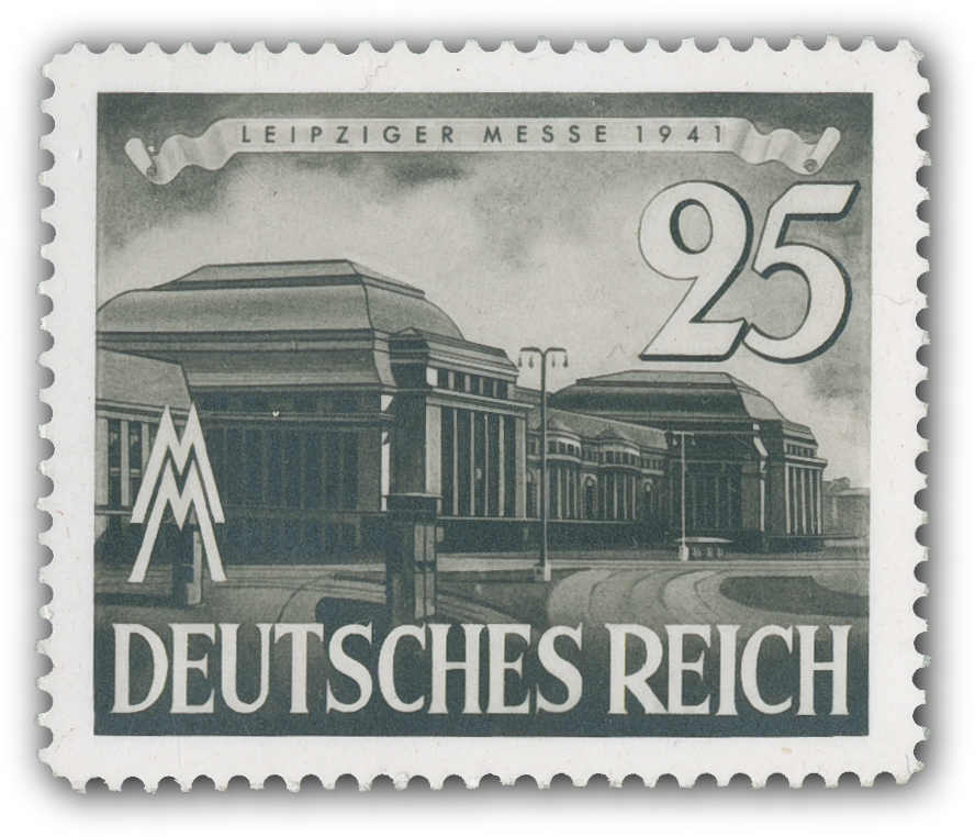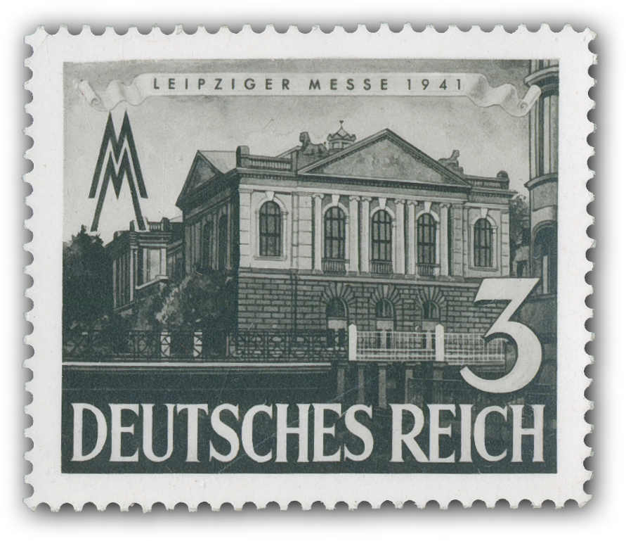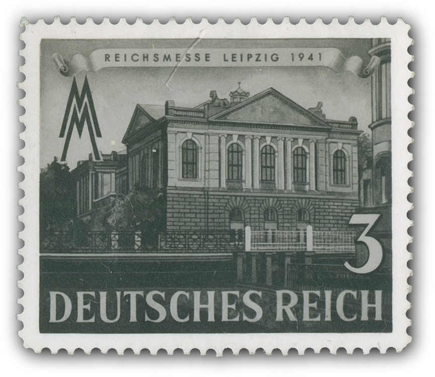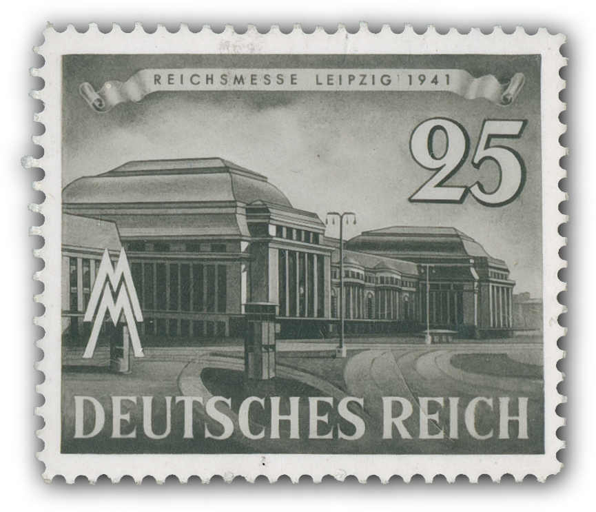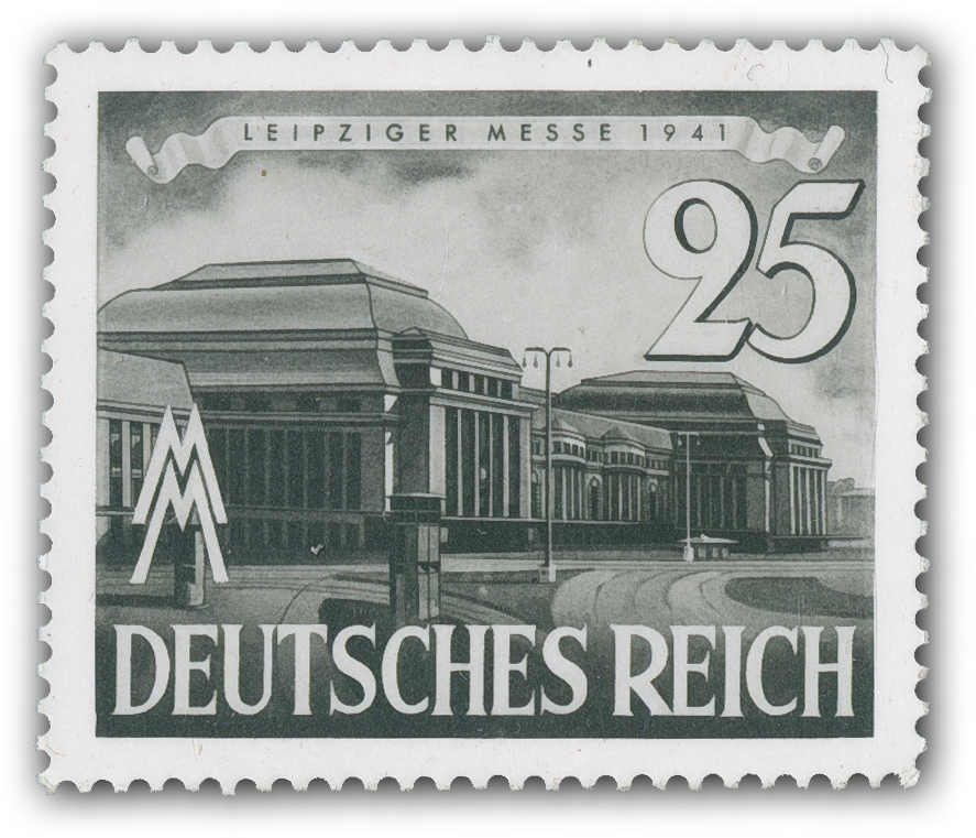 LEIPZIG FAIR 1941 Photo essay of the 25 (Rpf) stamp showing the finally executed design and also showing the version which was rejected two times.
