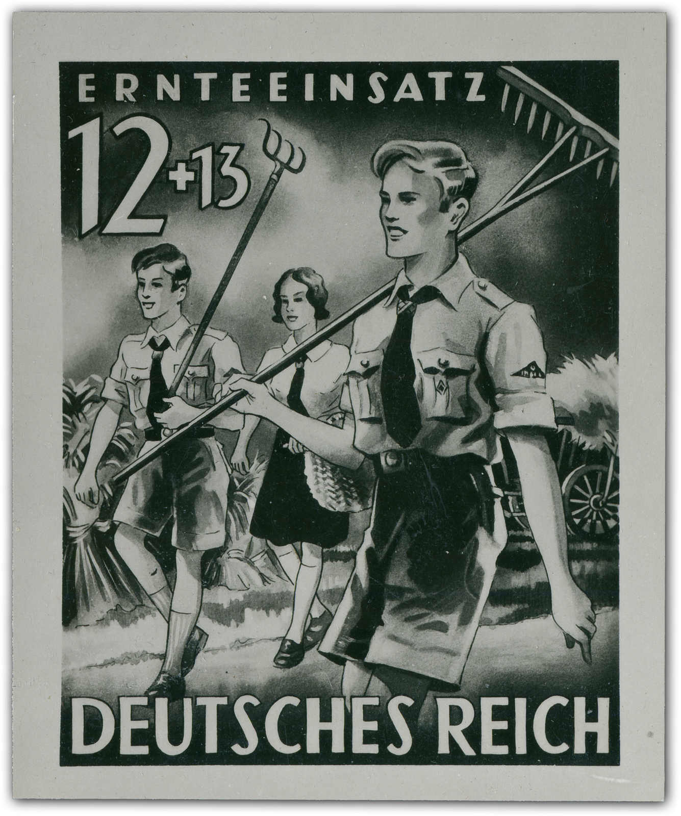 YOUTH IN SERVICE Lothar Wüst was the artist who had designed these 12 motifs. However, the Ministry of Propaganda turned down this topic as absolutely unappropiate. „You should know that shortages occurring due to the war cannot be a