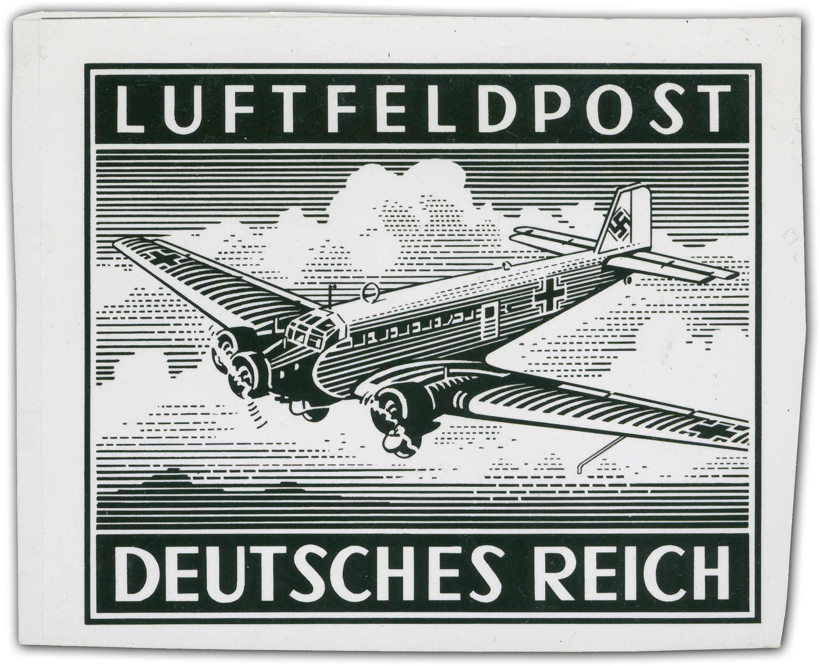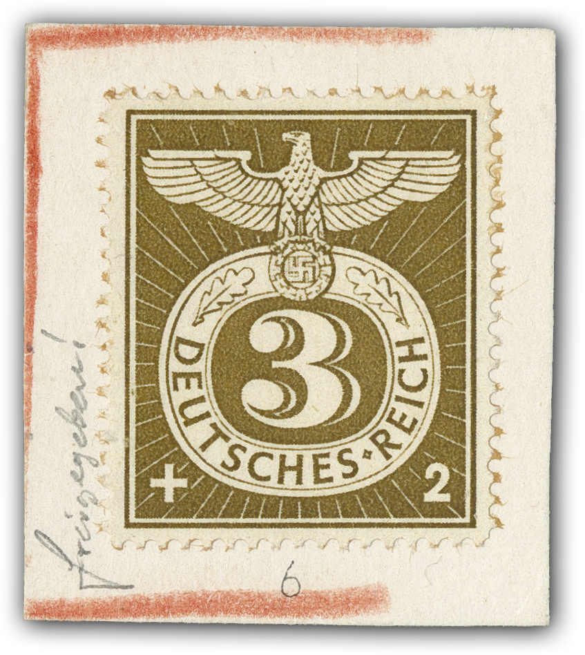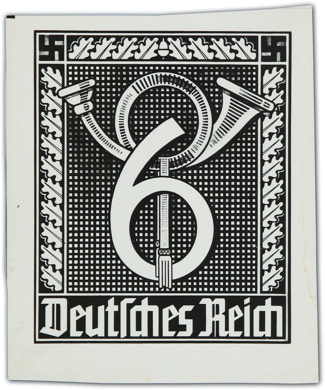 SPECIAL CANCELLATIONS The design of this “stamp for special cancellations“ of 1943 was considered to be too simple and was not accepted. With this photo essay the motif survived. Only this piece is known. In addition two essays of 6 and