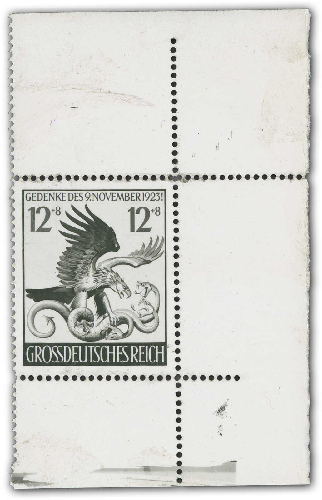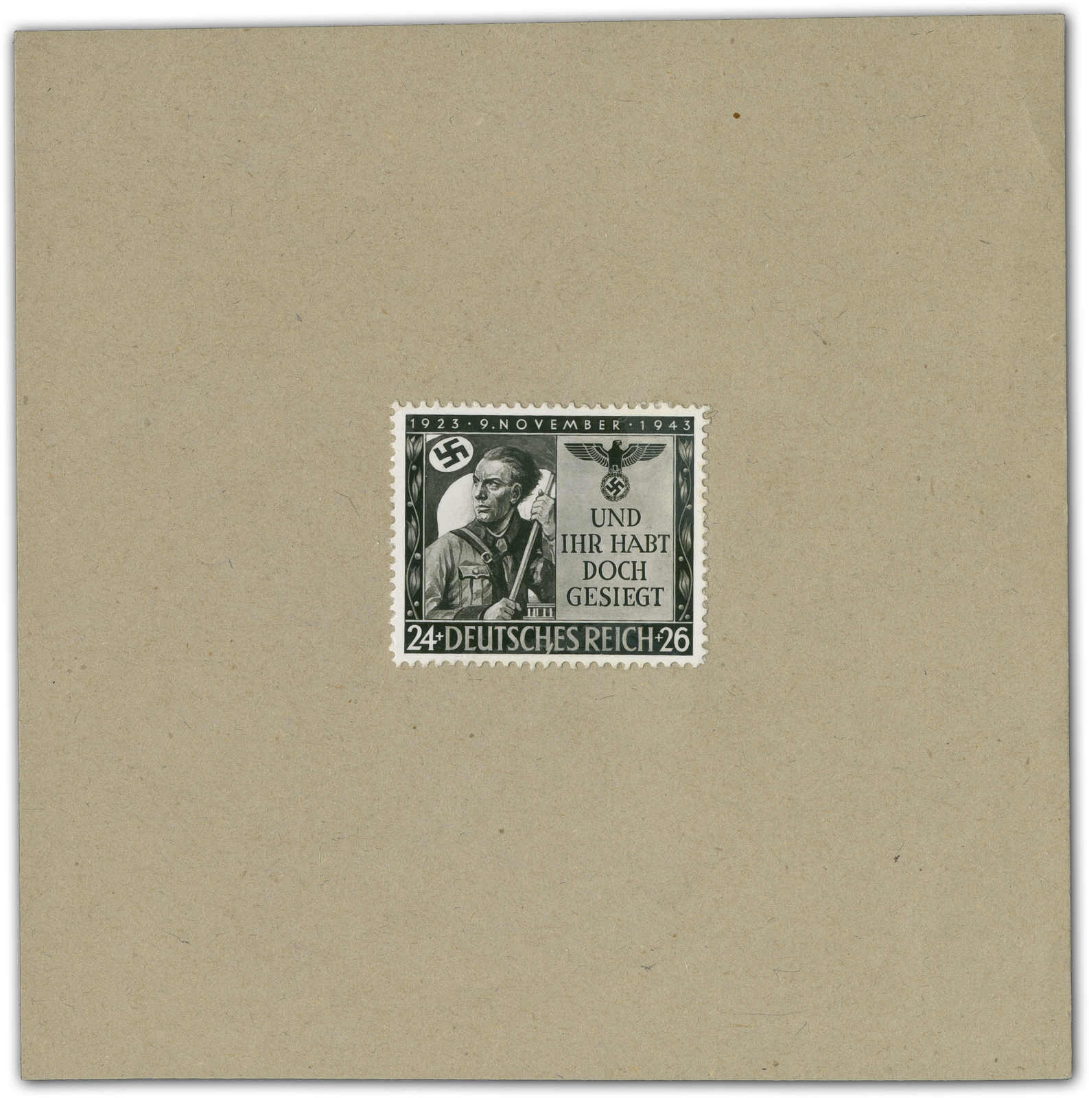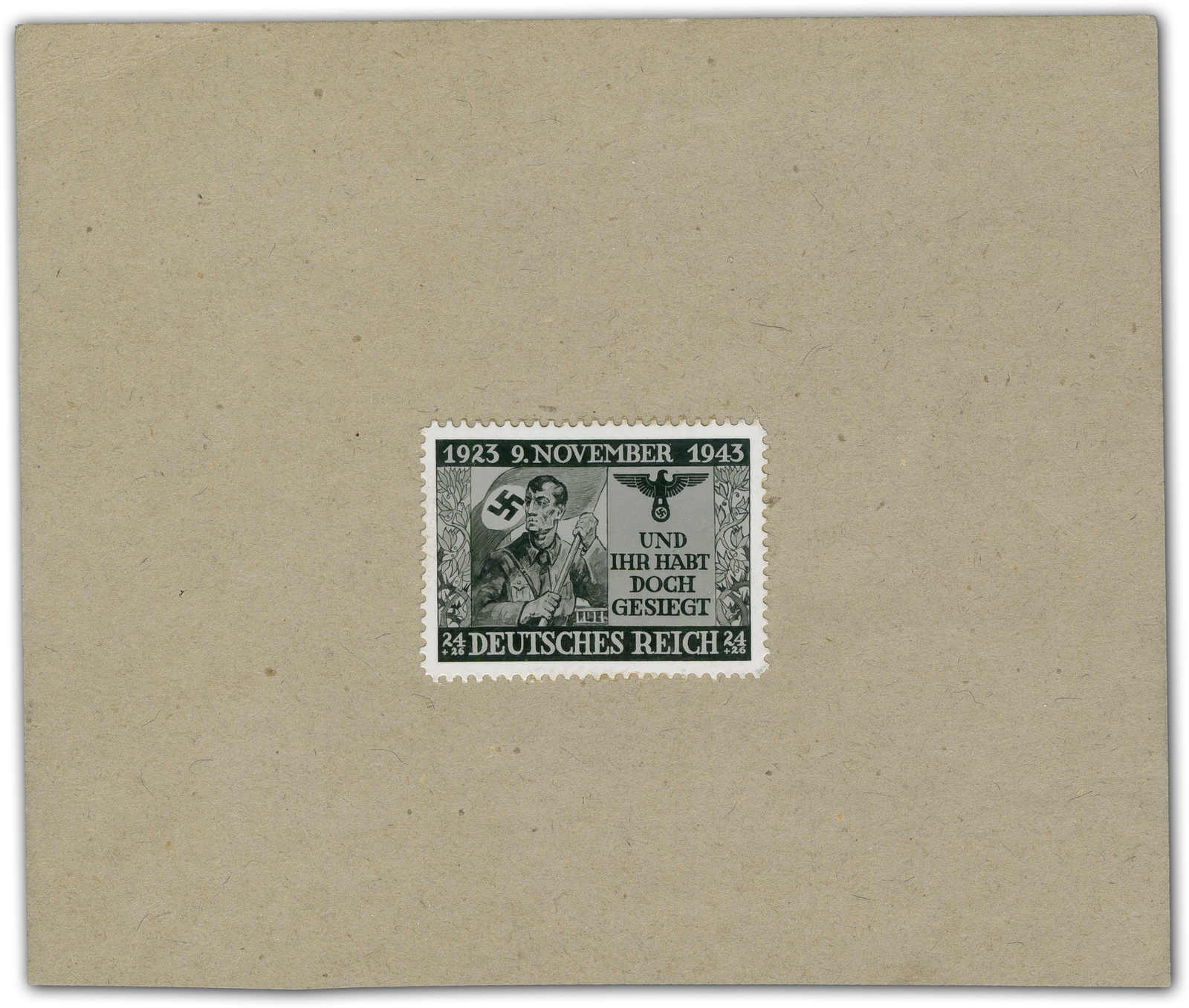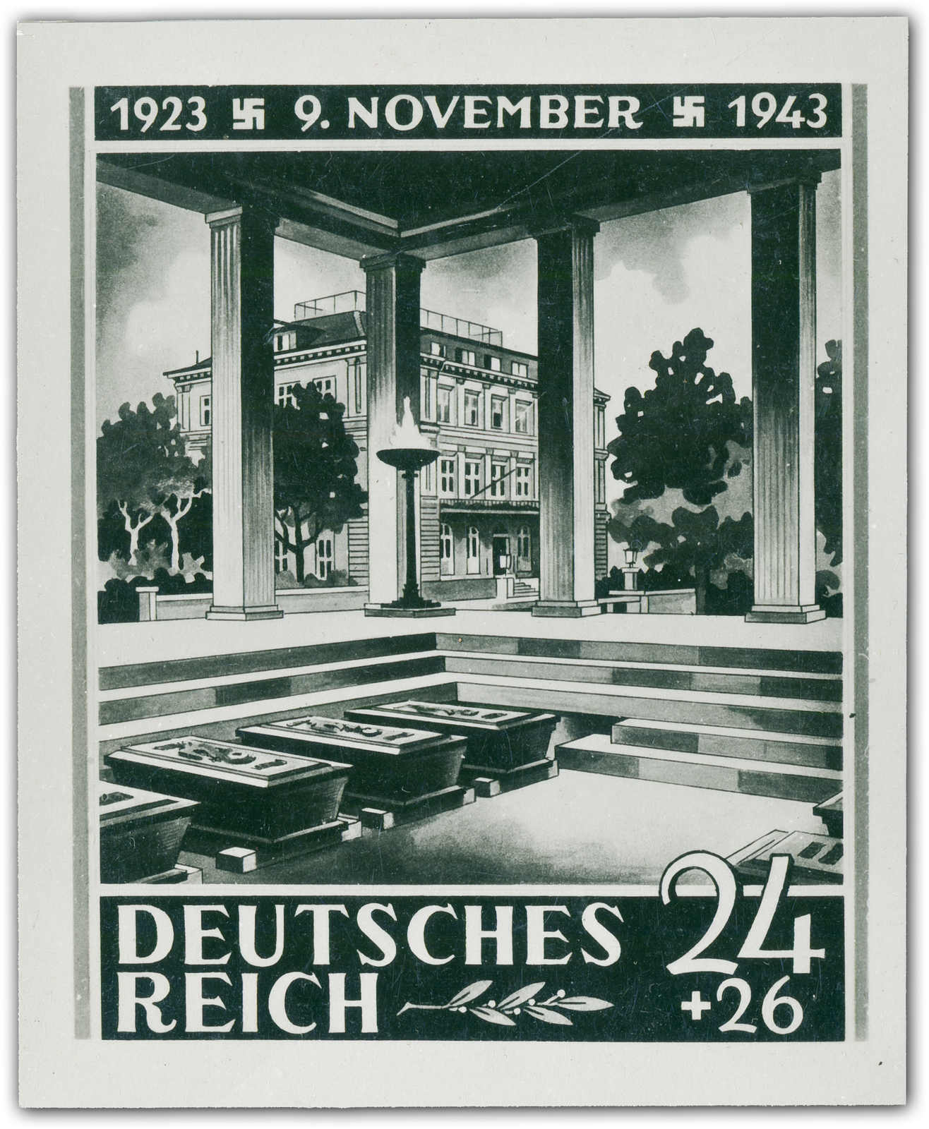 NOVEMBER 9th, 1943 COMMEMORATIVE STAMP In 1943 Erich Meerwald created a commemorative stamp to mark the 9th of November. The motif did not meet with the approval of the Ministry of Propaganda. Only this photo essay of the Meerwald draft