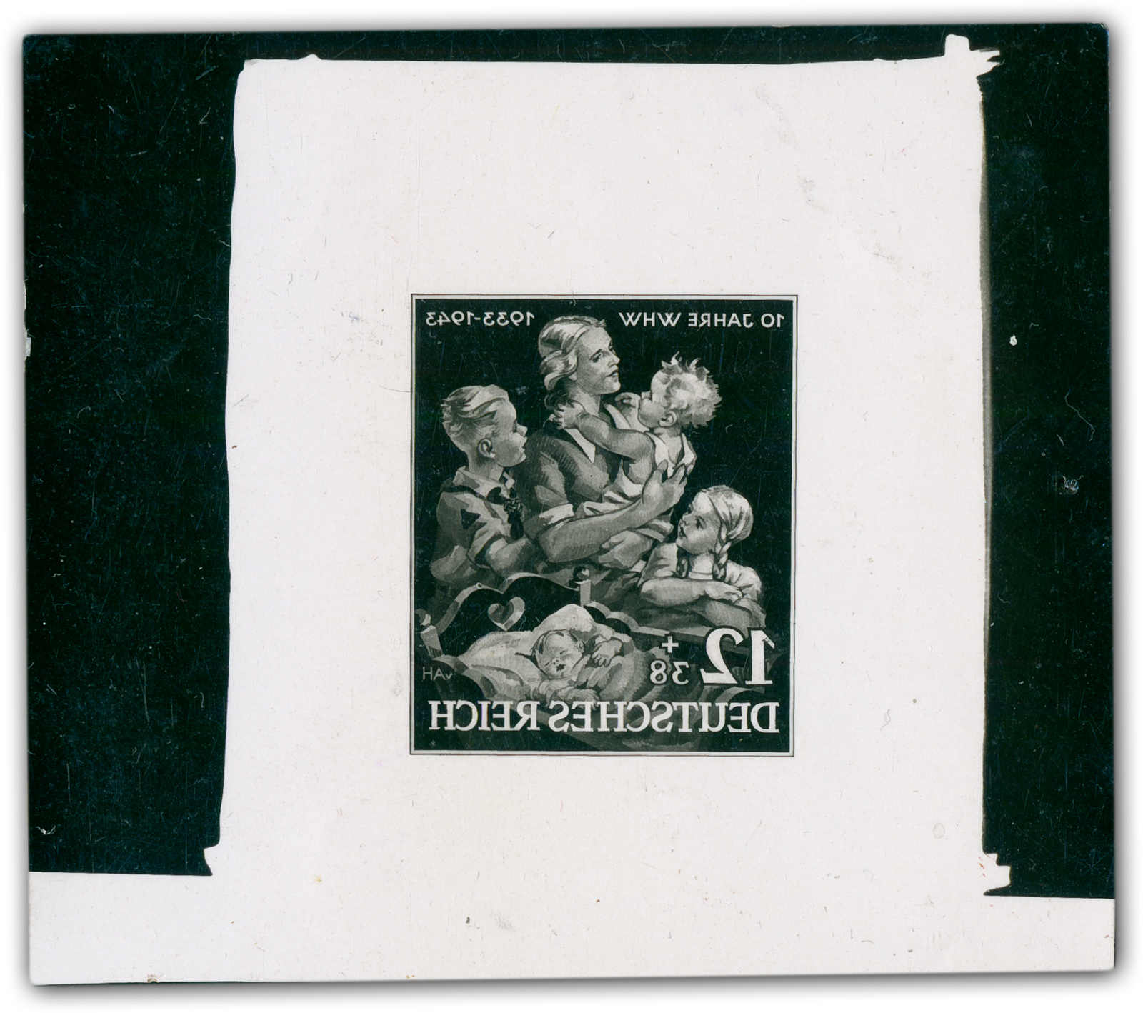 10TH ANNIVERSARY WHW WINTER AID RELIEF FUND – 1943 Photo essay of the final drawing of Axster-Heudtlass in a mirror inverted position. In this way, consequently negative, the motif was applied onto the steel plate, the so-called steel