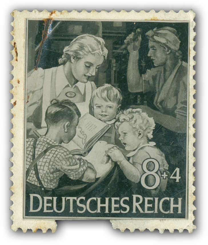 10TH ANNIVERSARY “MOTHER AND CHILD“ RELIEF FUND Axster-Heudtlass was the creator of the set of four stamps which was issued in 1944. Only this photo essay of an unaccepted motif survived. It still bears the country name “DEUTSCHES REICH“