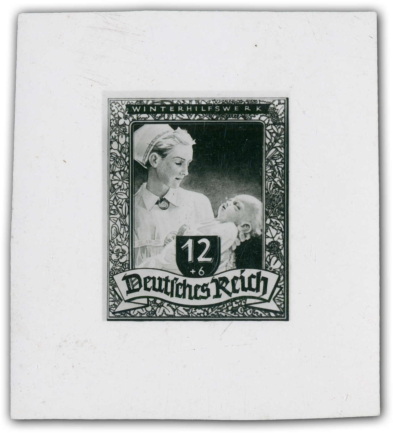 WINTER AID RELIEF FUND 1939 Photo essay of adraft for the 1939 WHW series. This motif was not used for the issued stamps. (Image)