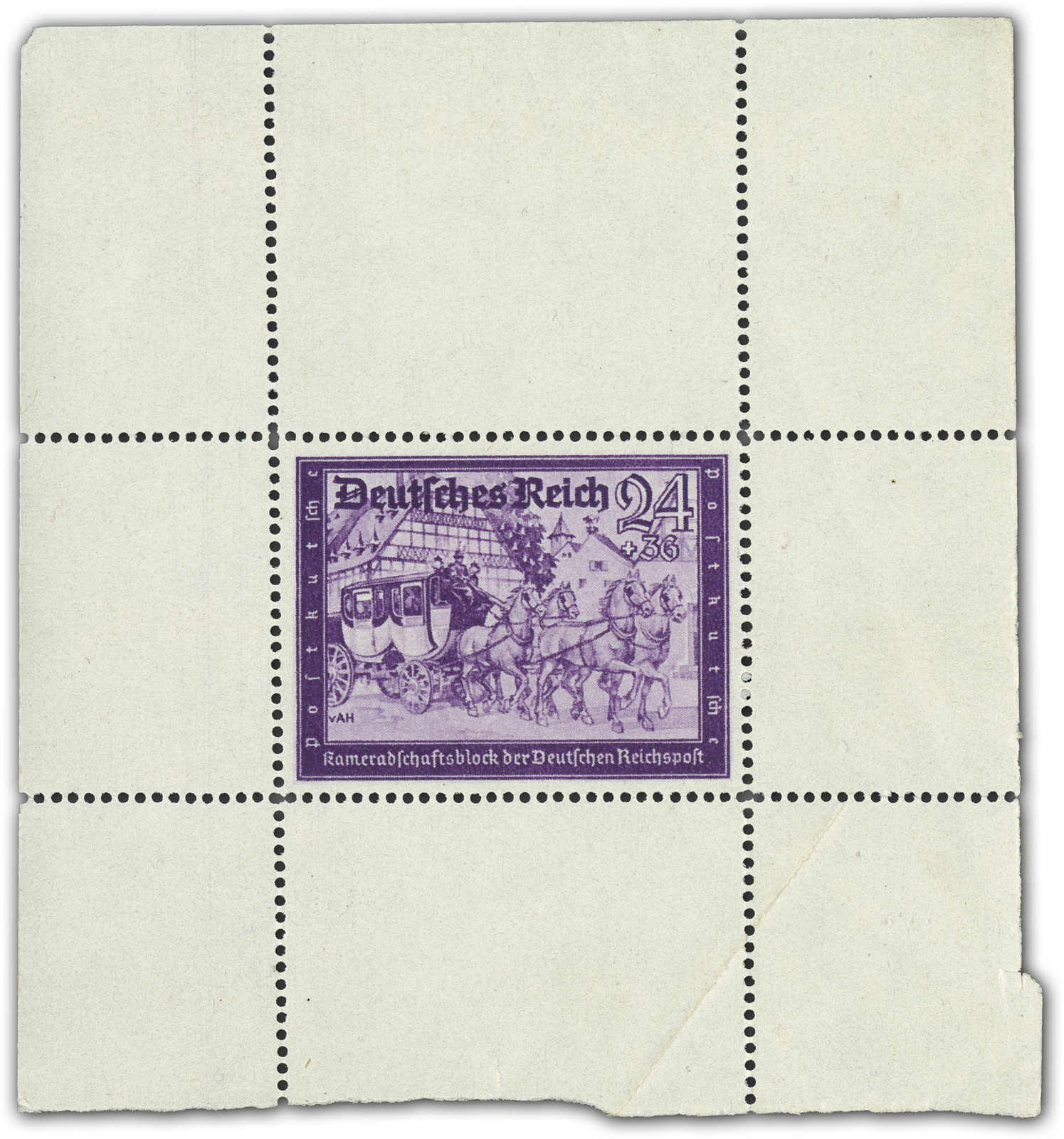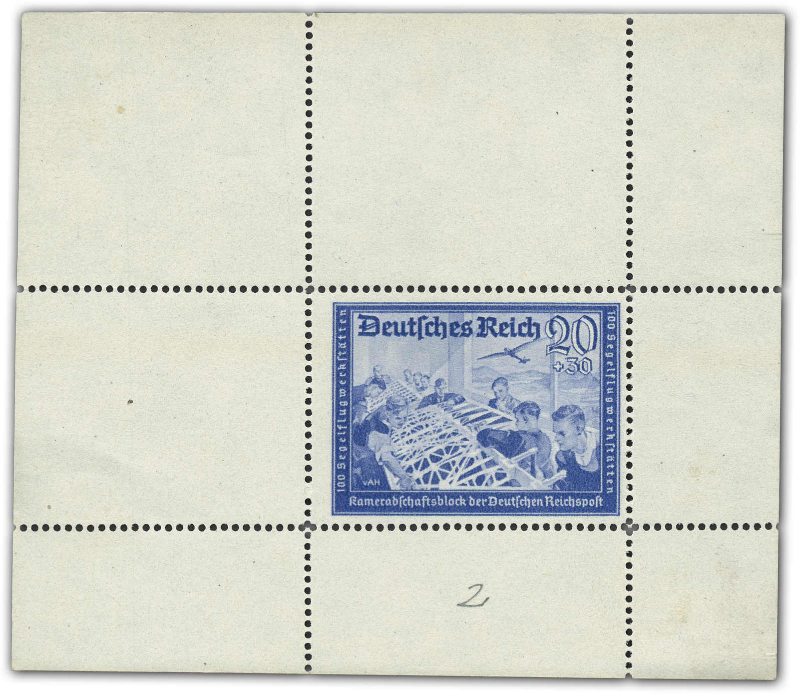 1941 COMRADESHIP OF THE GERMAN REICHSPOST We are herewith offering the unique documentation of proofs of this issue. The lot consists of 23 minisheets, each with a single proof. All face values in different colours including the only