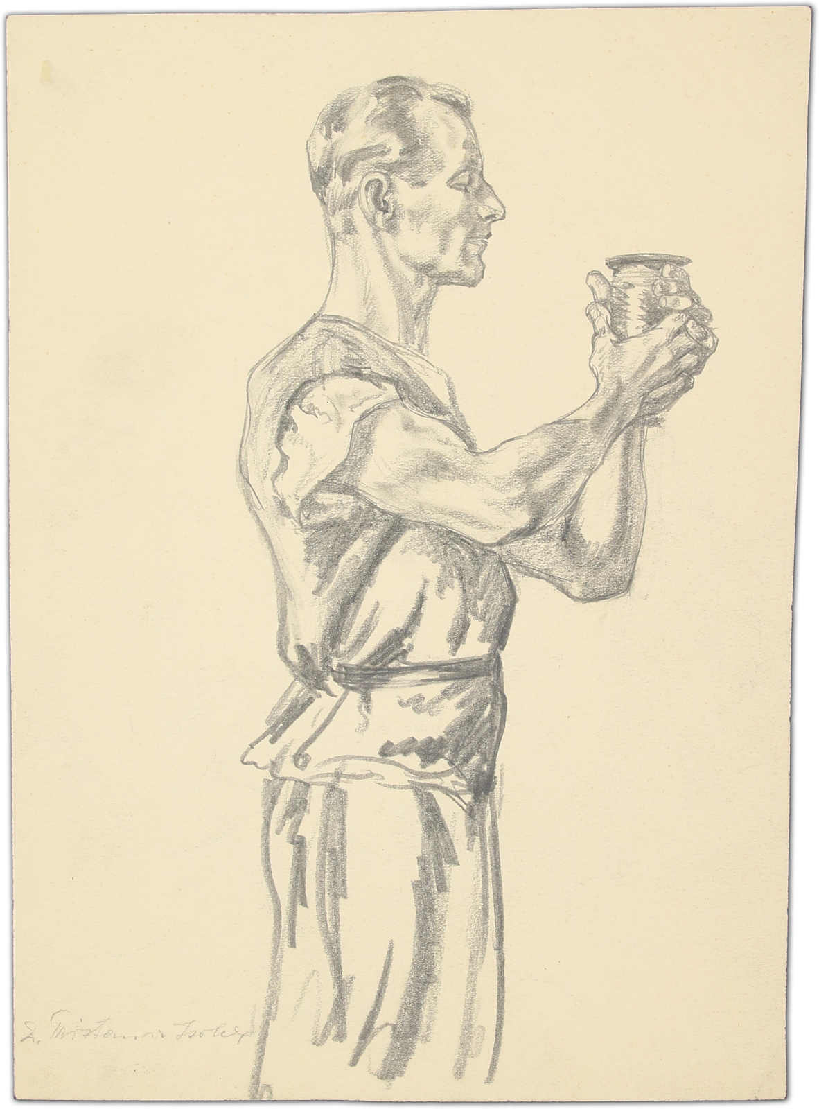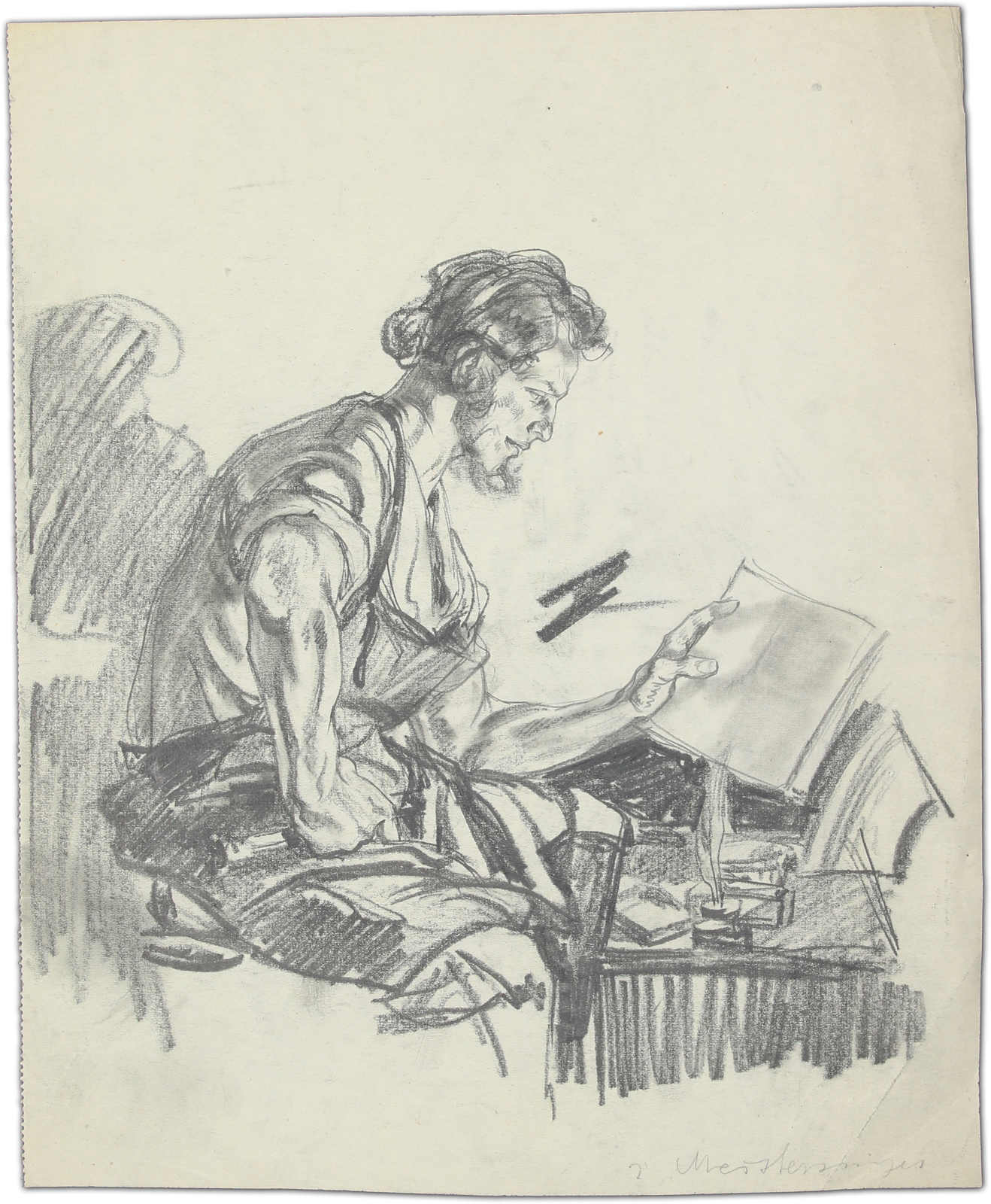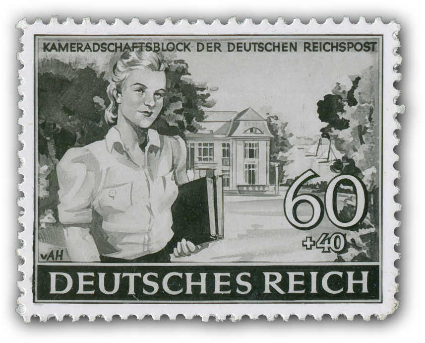 COMRADESHIP OF THE GERMAN REICHSPOST 1944 Single print of a motif “young trainee in front of a Reichspost boarding school“ which was not accepted. The indication of value was 60+40 (Rpf).The print was executed in a grey-blue shade. (Image)