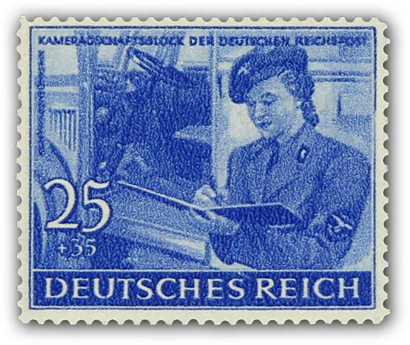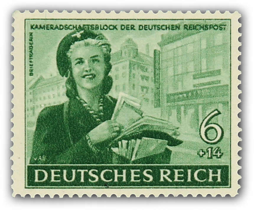 1944 COMRADESHIP OF THE GERMAN REICHSPOST Axster-Heudtlass designed six different motifs for the 1944 series of which only two were accepted in a modified version. These are the 6 (Rpf) und 12 (Rpf) values (postwoman and chief of the