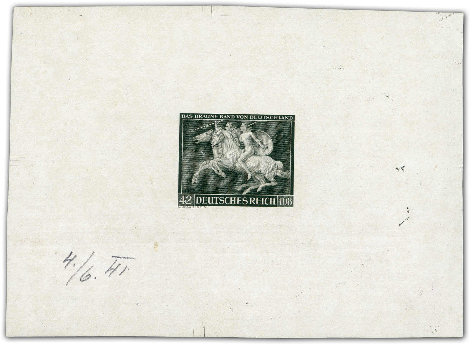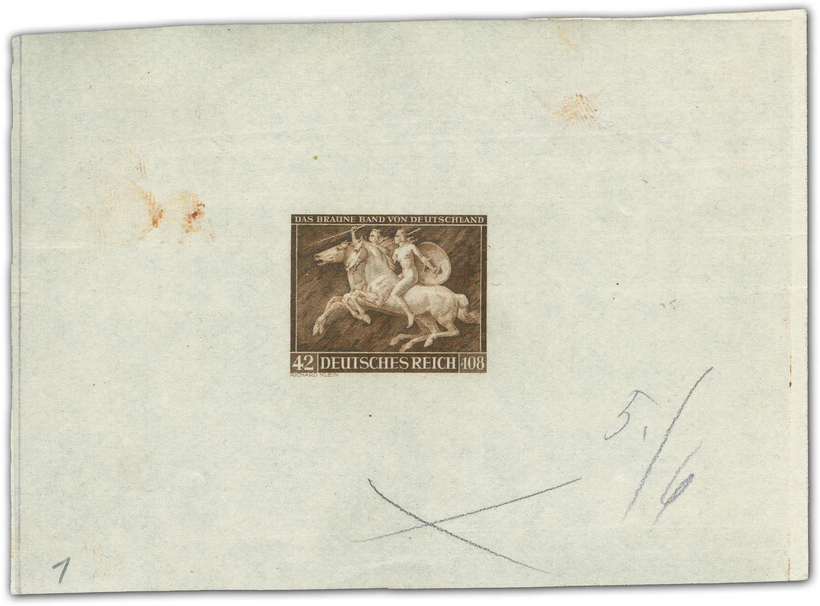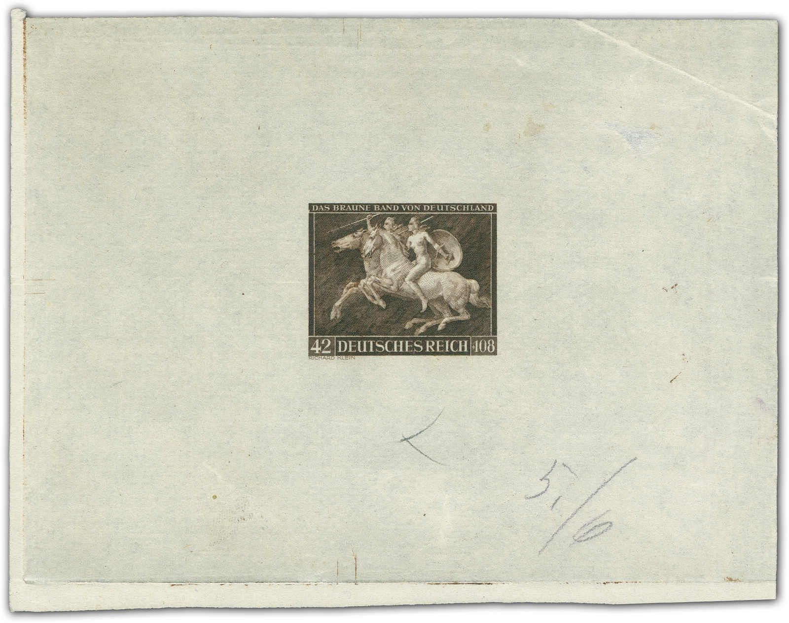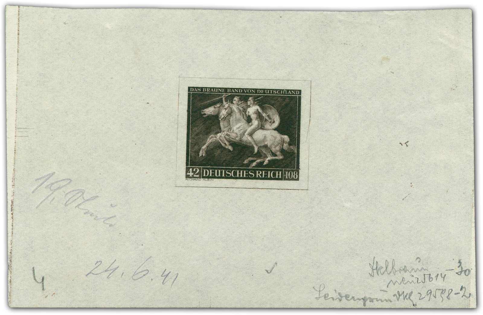 The Brown Ribbon 1941 Print taken from the original die exemplarily executed, now perforated. This is the so-called 2nd version. It was needed to later produce so-called presentation cards. For this purpose the prints were ripped out from