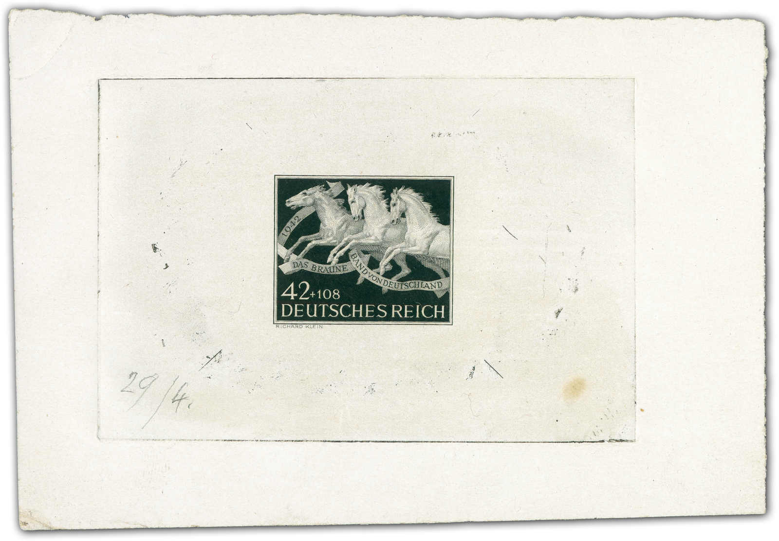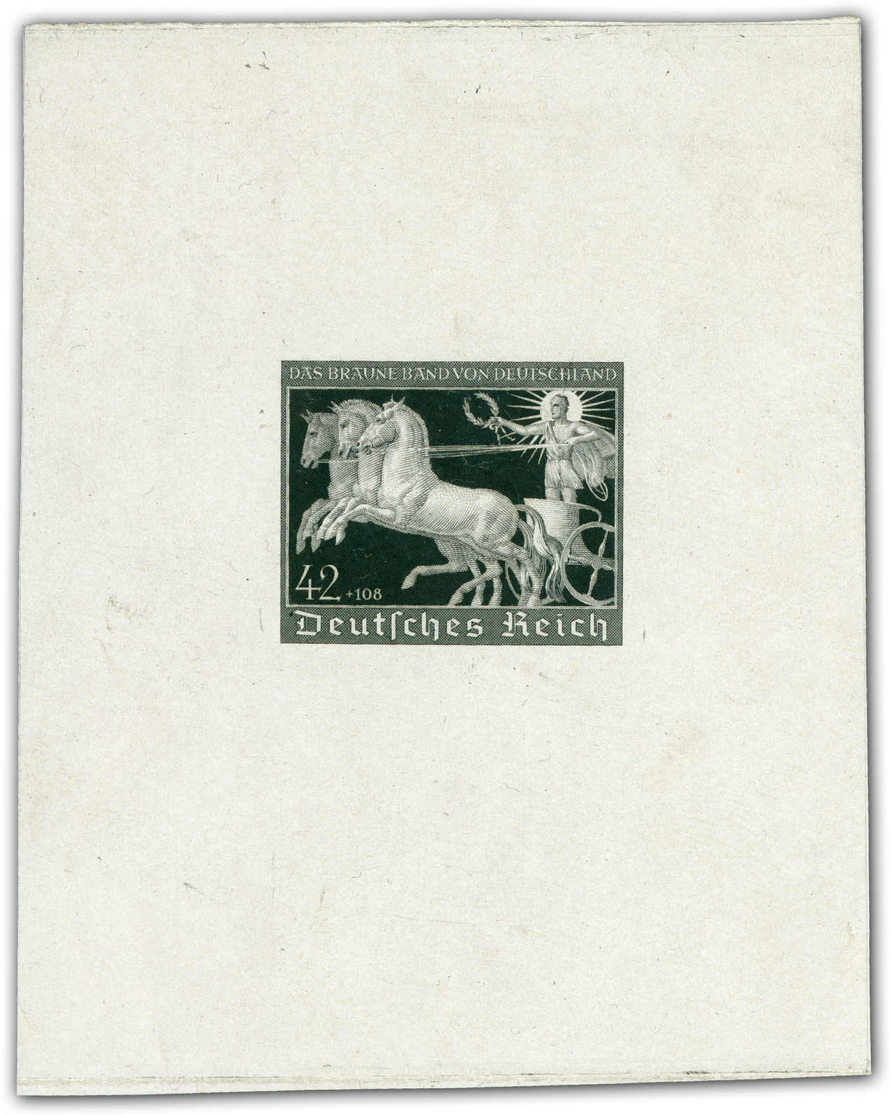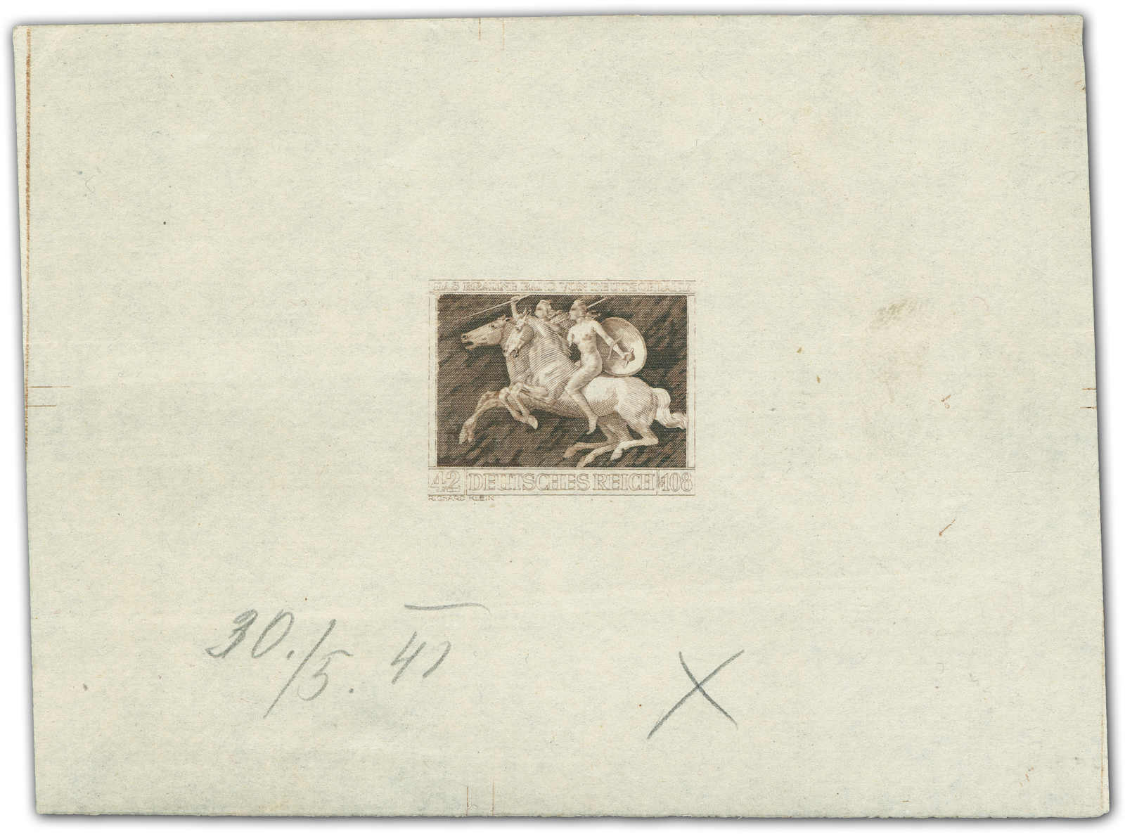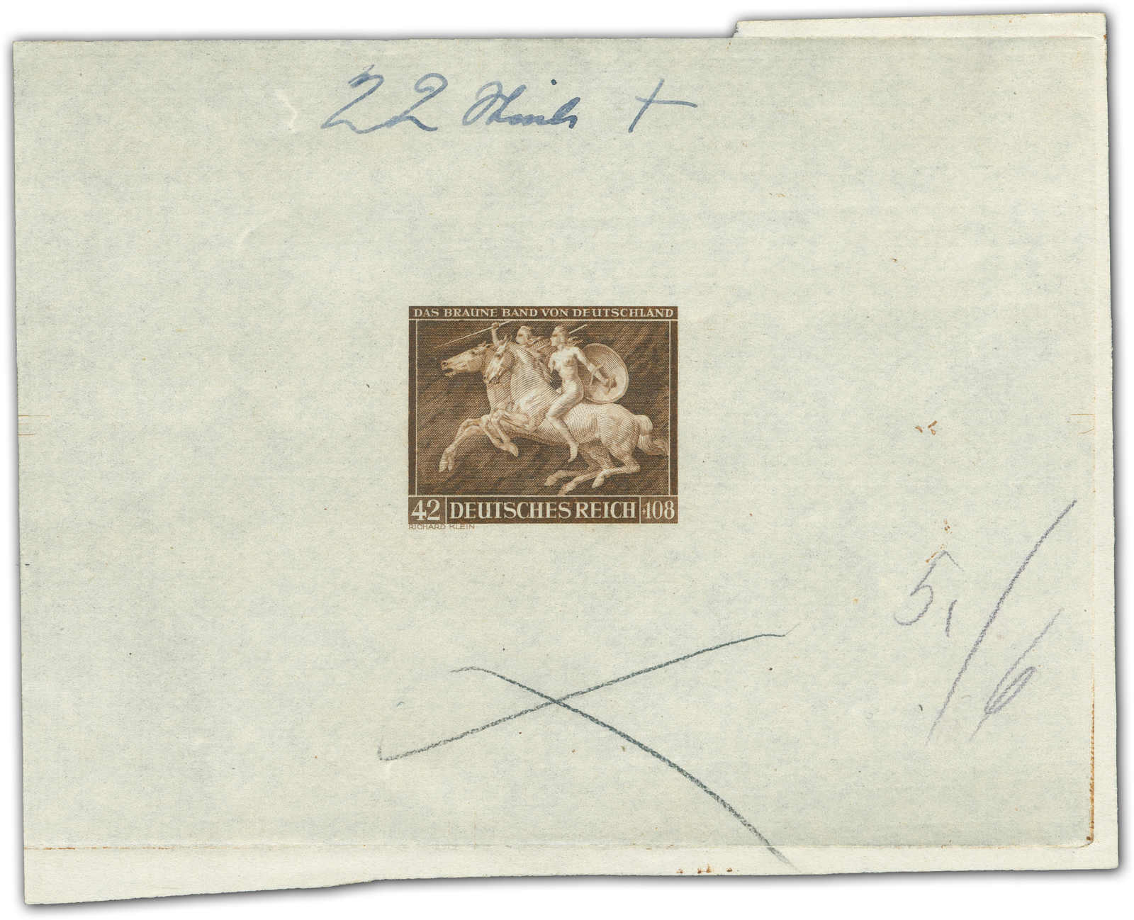 The Brown Ribbon 1941 Print taken from the original die exemplarily executed, now perforated. This is the so-called 2nd version. It was needed to later produce so-called presentation cards. For this purpose the prints were ripped out from