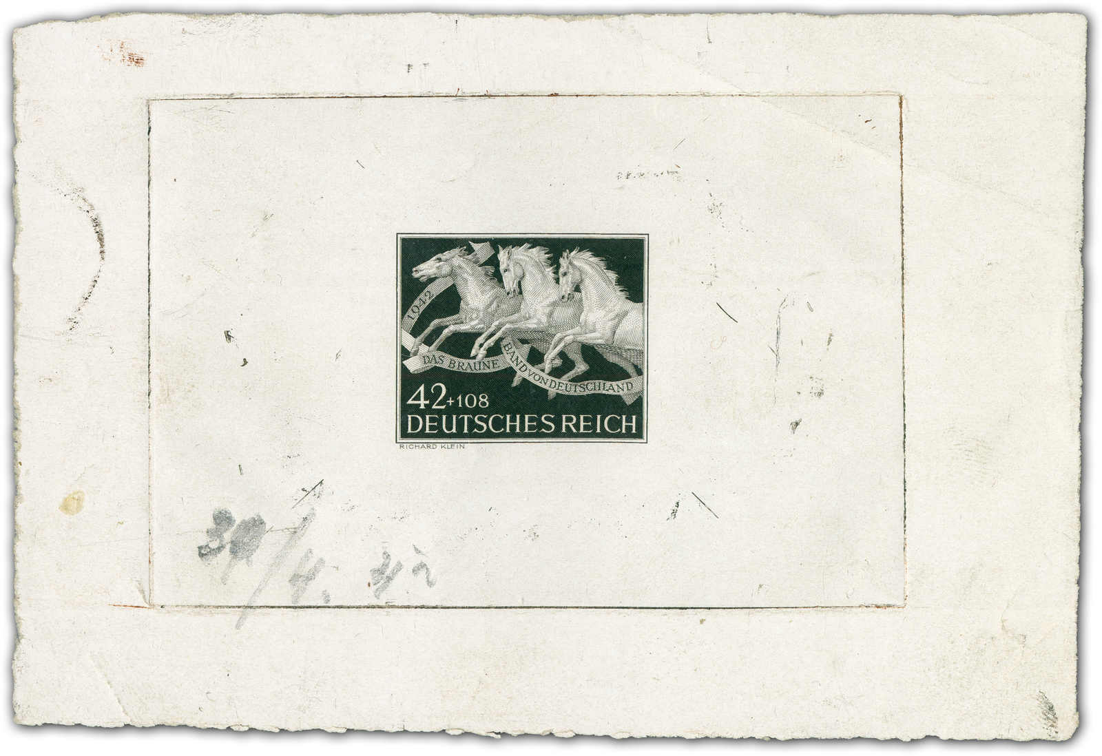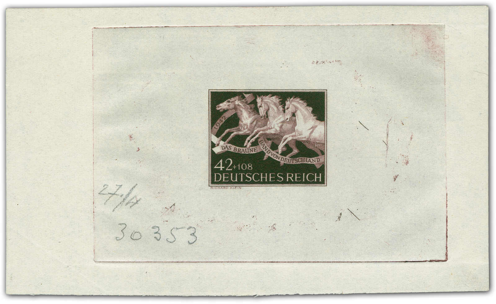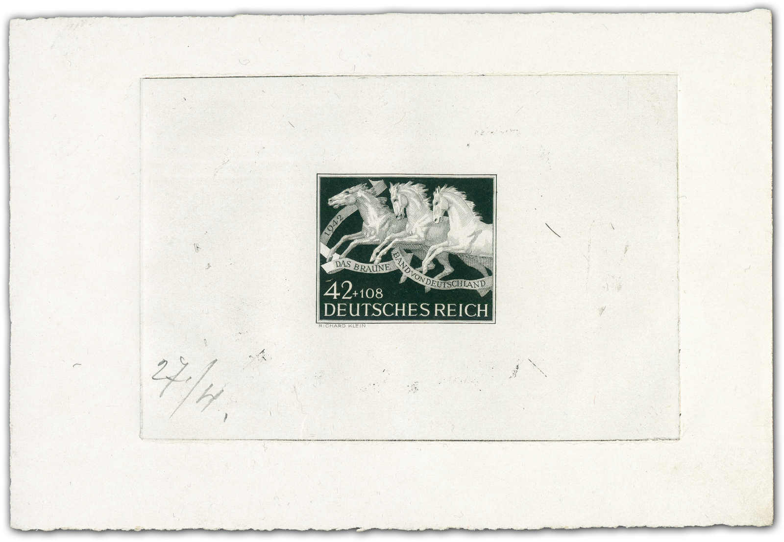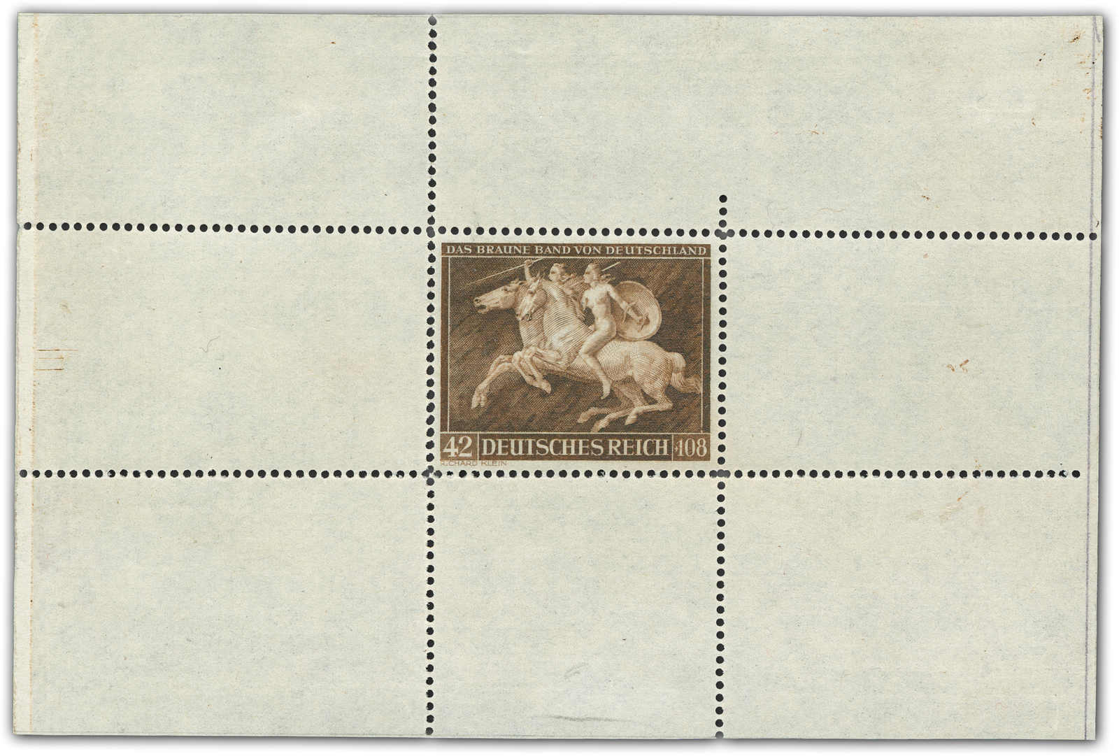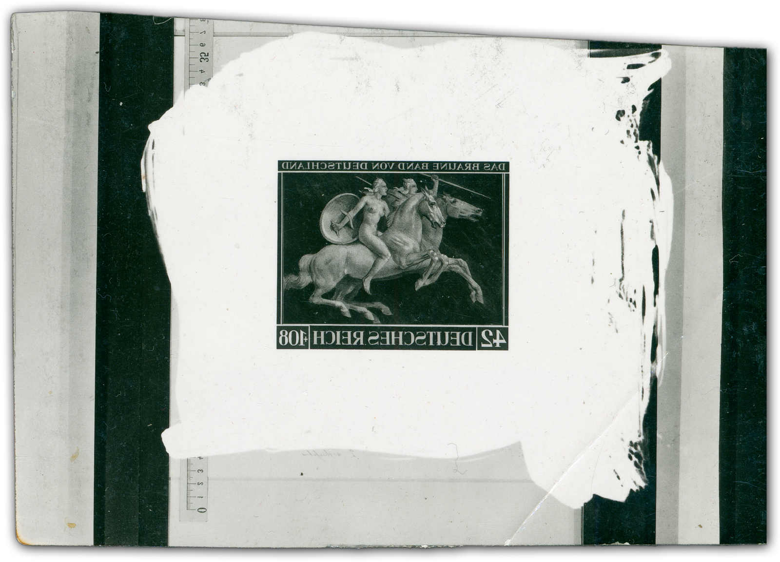 The Brown Ribbon 1941 Print taken from the original die exemplarily executed, now perforated. This is the so-called 2nd version. It was needed to later produce so-called presentation cards. For this purpose the prints were ripped out from