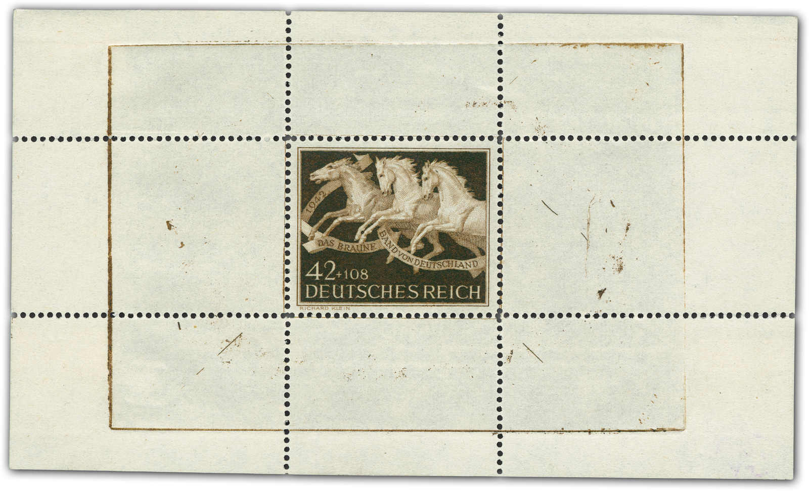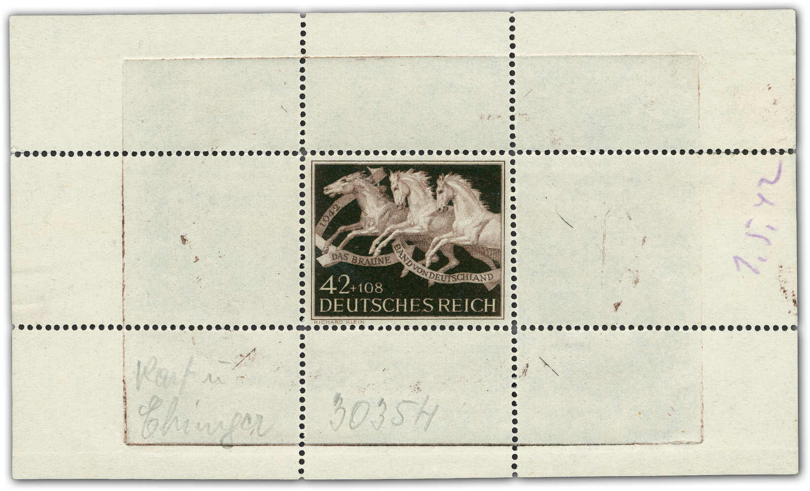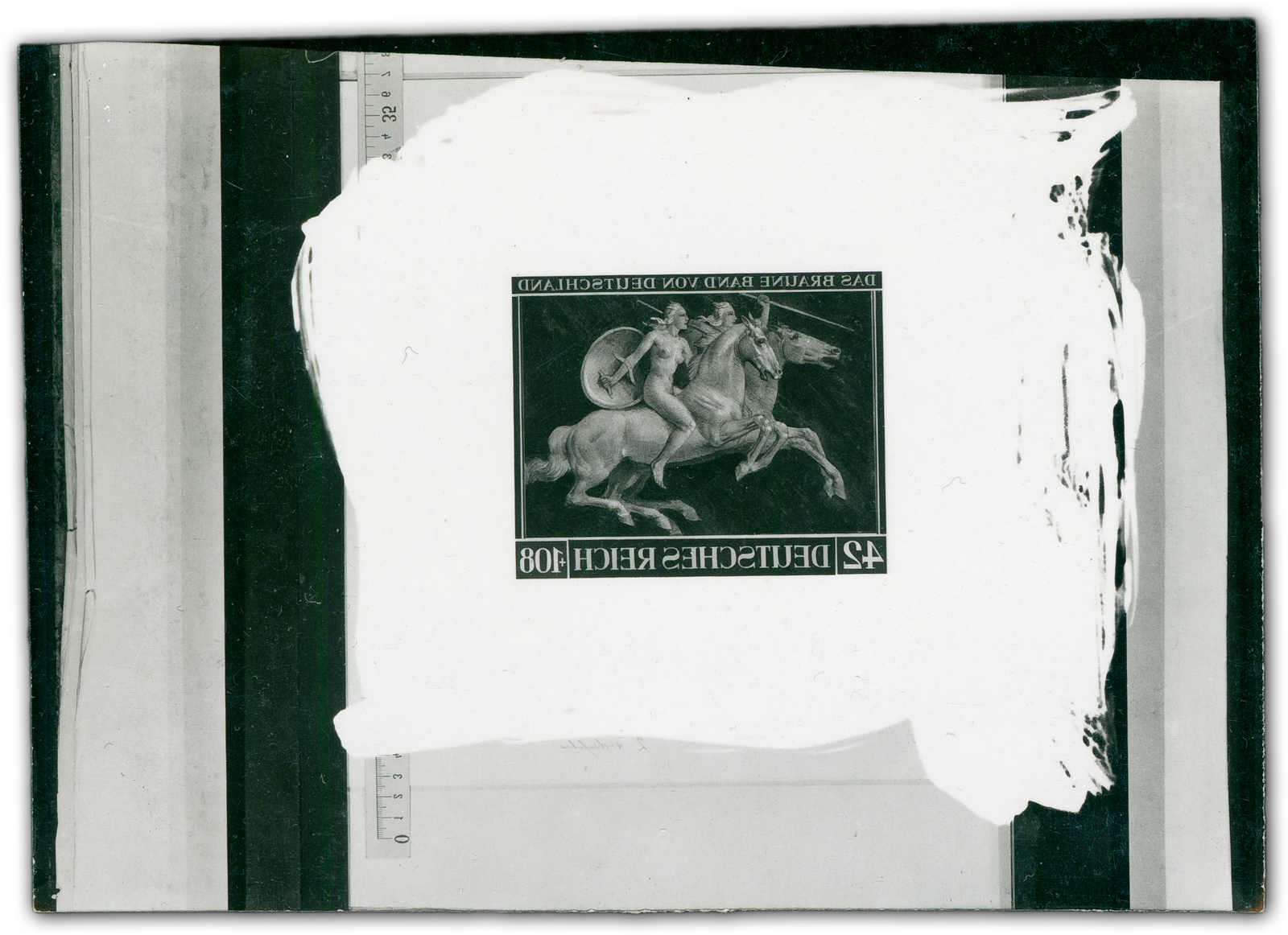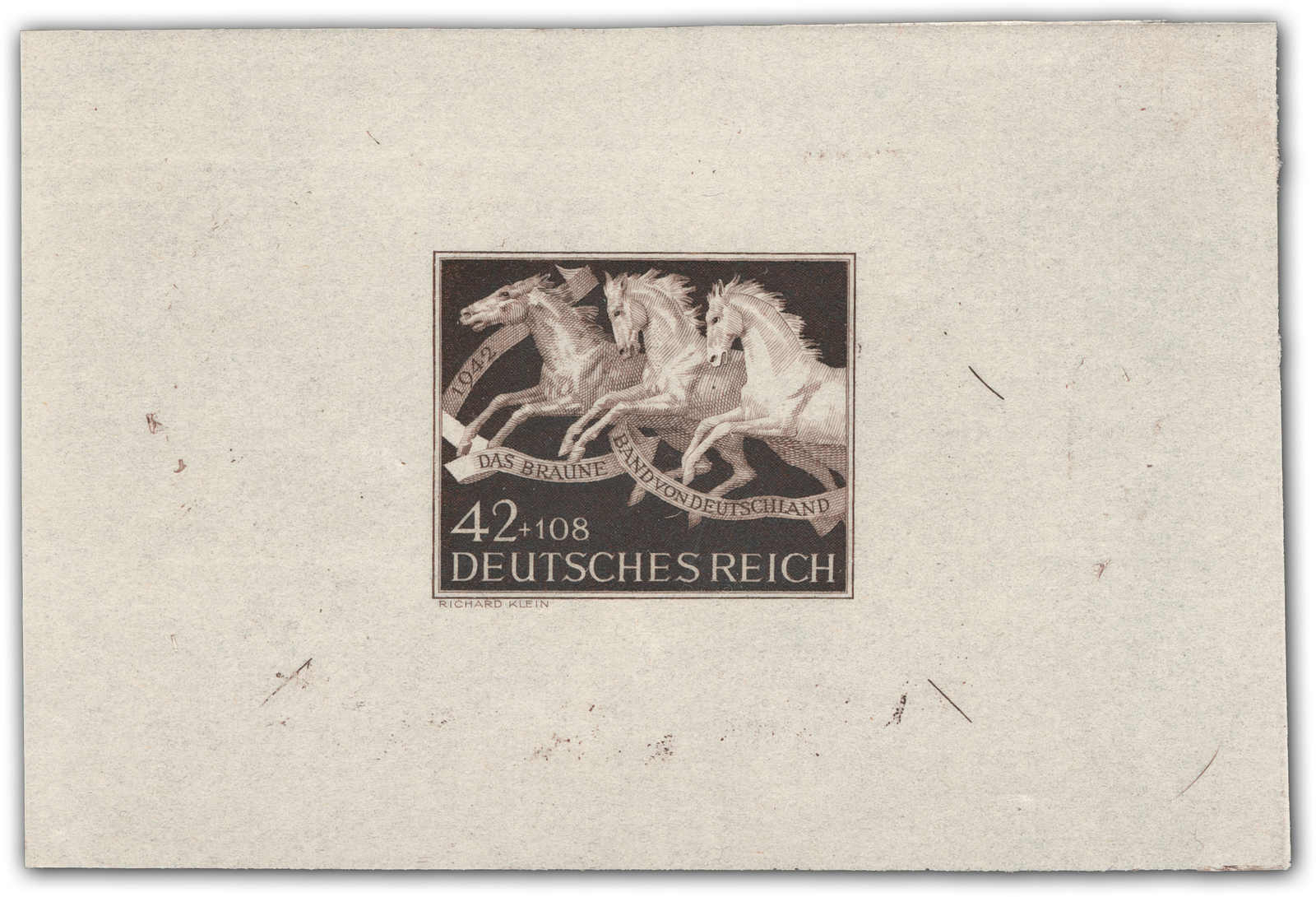 The Brown Ribbon 1941 Print taken from the original die exemplarily executed, now perforated. This is the so-called 2nd version. It was needed to later produce so-called presentation cards. For this purpose the prints were ripped out from