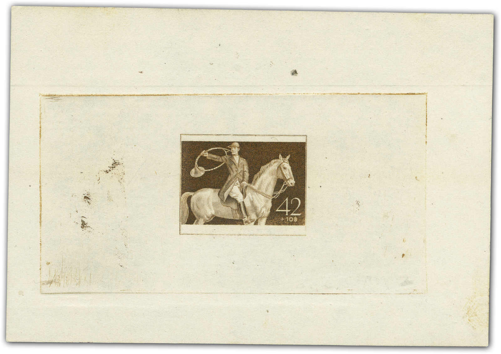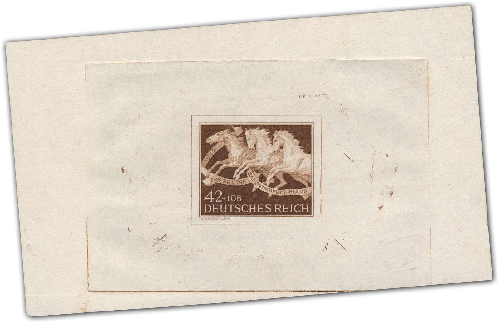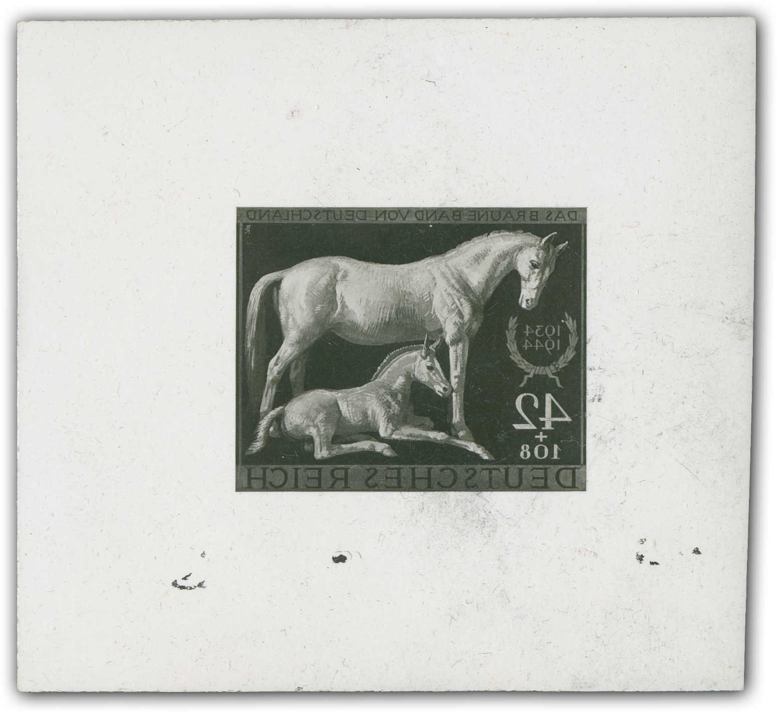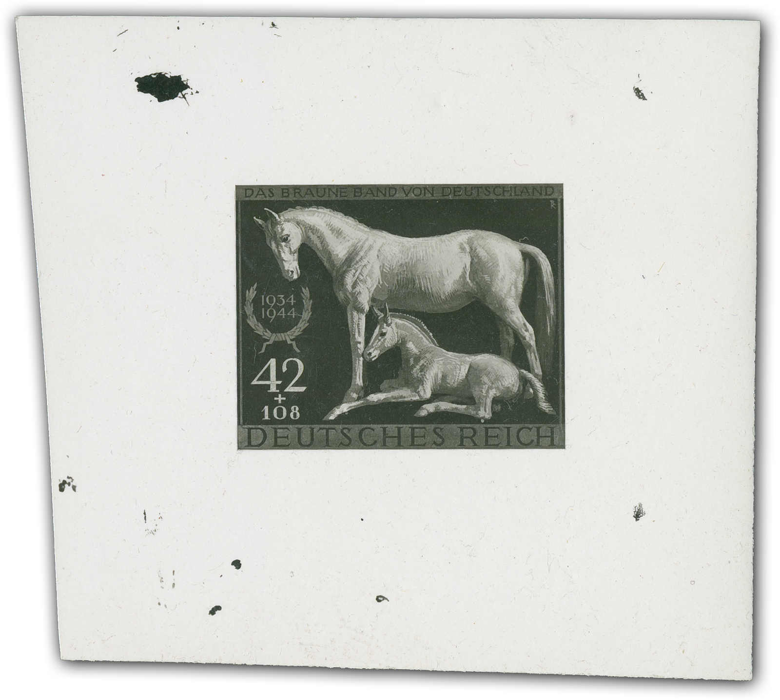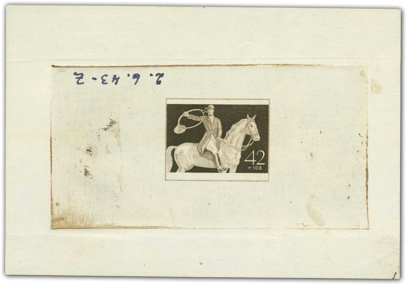Major award of Germany for three-year old horses On the occasion of the “Blue Ribbon“ a commemorative stamp was issued for the first time in 1940. The motif was designed by the engraver E.Stahl. The first draft of the artist – which was