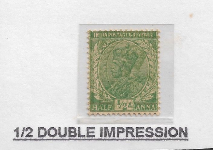 India KGV 1/2a green with SUPERB ERROR VARIETY - Stamp Doubly printed - Unrecorded by SG(Image 1)