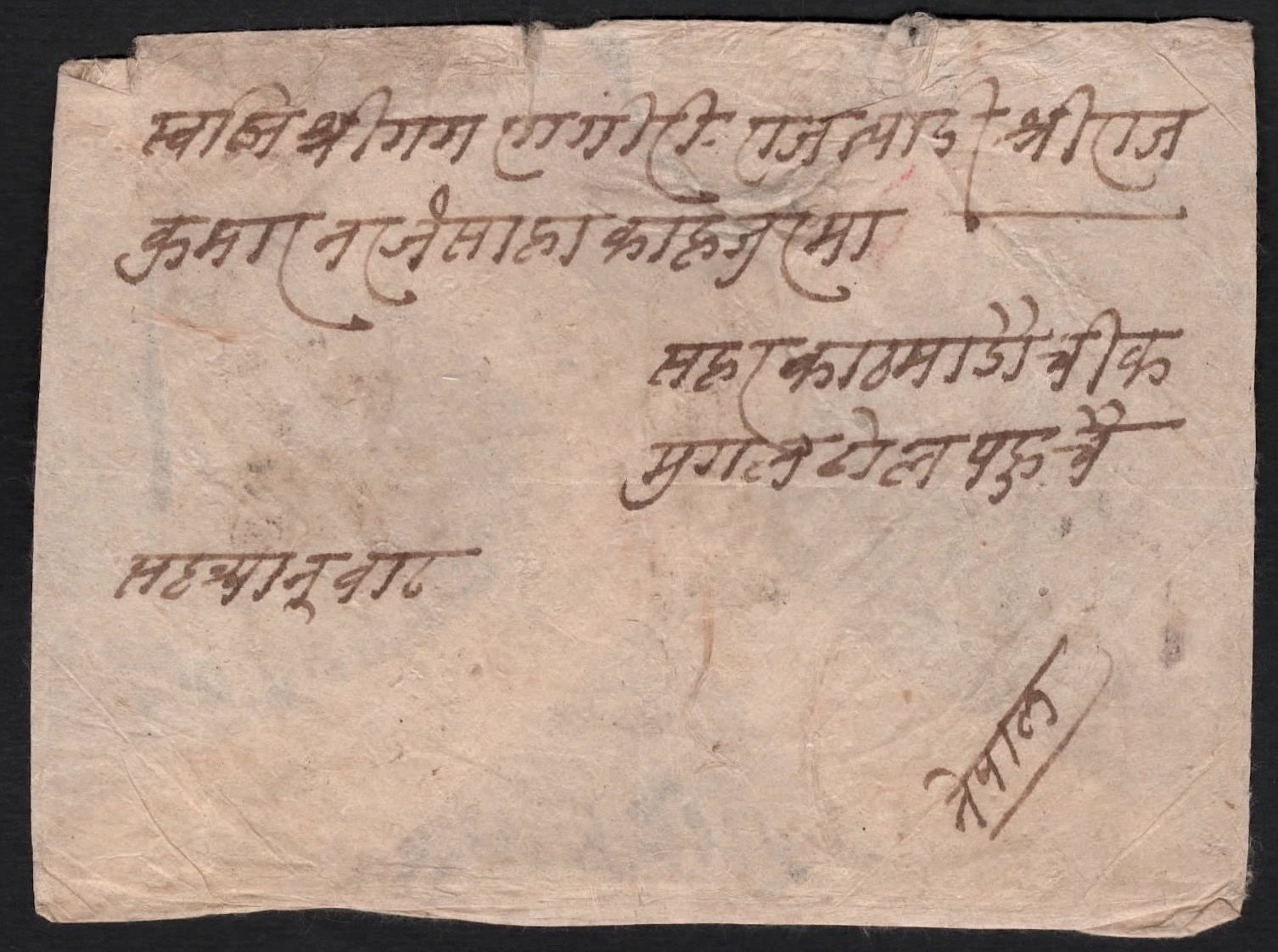 7119 imageNepal 1908 1a Recut variety classic issue on cover from TAULIHAWA (Rare PO) to Kathmandu(Image 1) (Image 2)