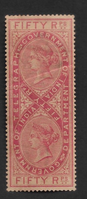 India 1869 50R Top value unused QV Telegraph stamp, Die II, SG £T20, CV £850(Image 1)