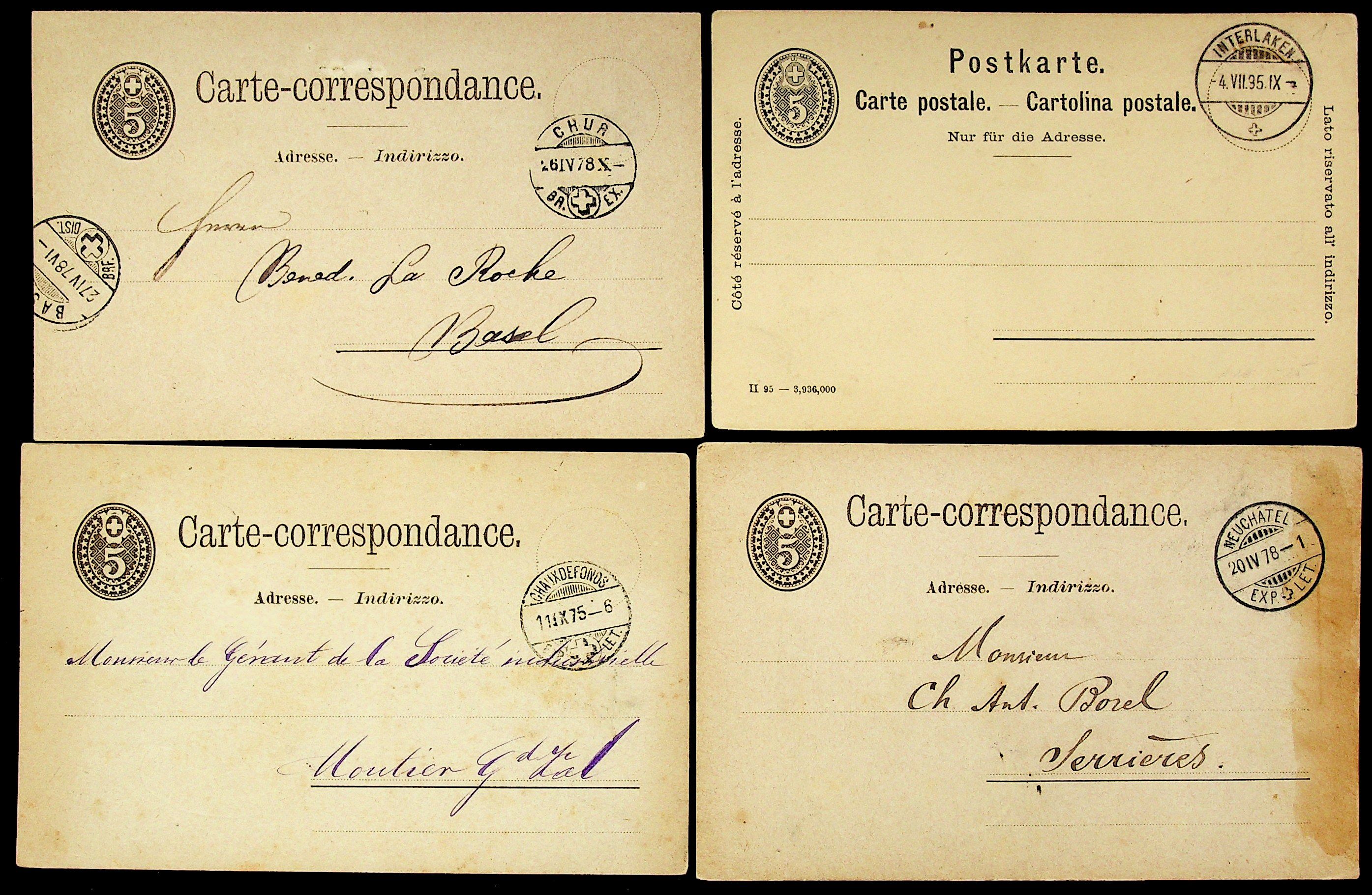 Switzerland 1882-1900 4 cover fronts, 3 w/ Postage Due, 1 Regd w/ different cancels to various domestic destinations(Image 1)