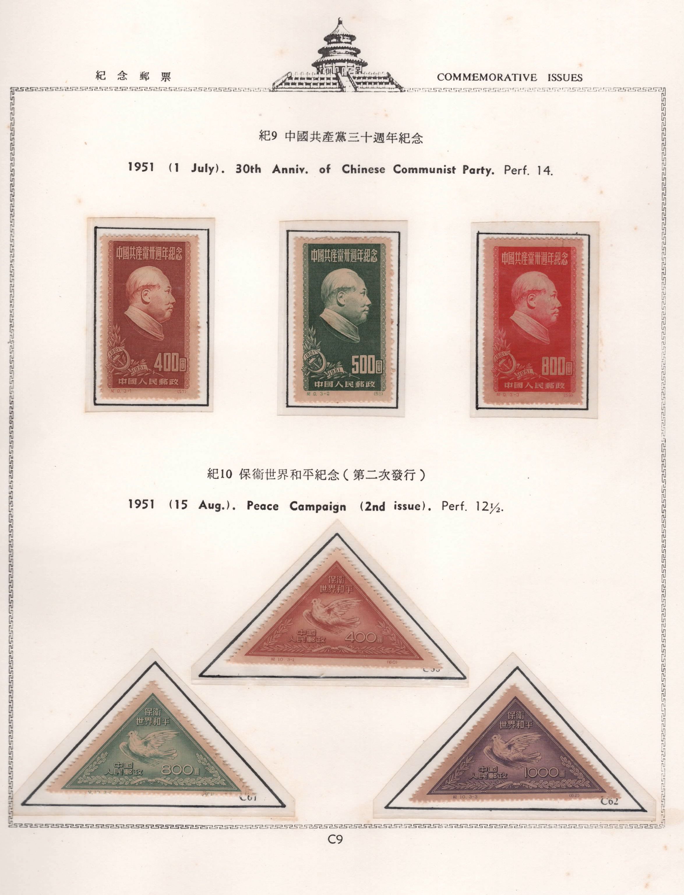 China 1951 30th Anniv. of Chinese Communist Party + Peace Campaign (2nd issue) - 6 unused stamps(Image 1)