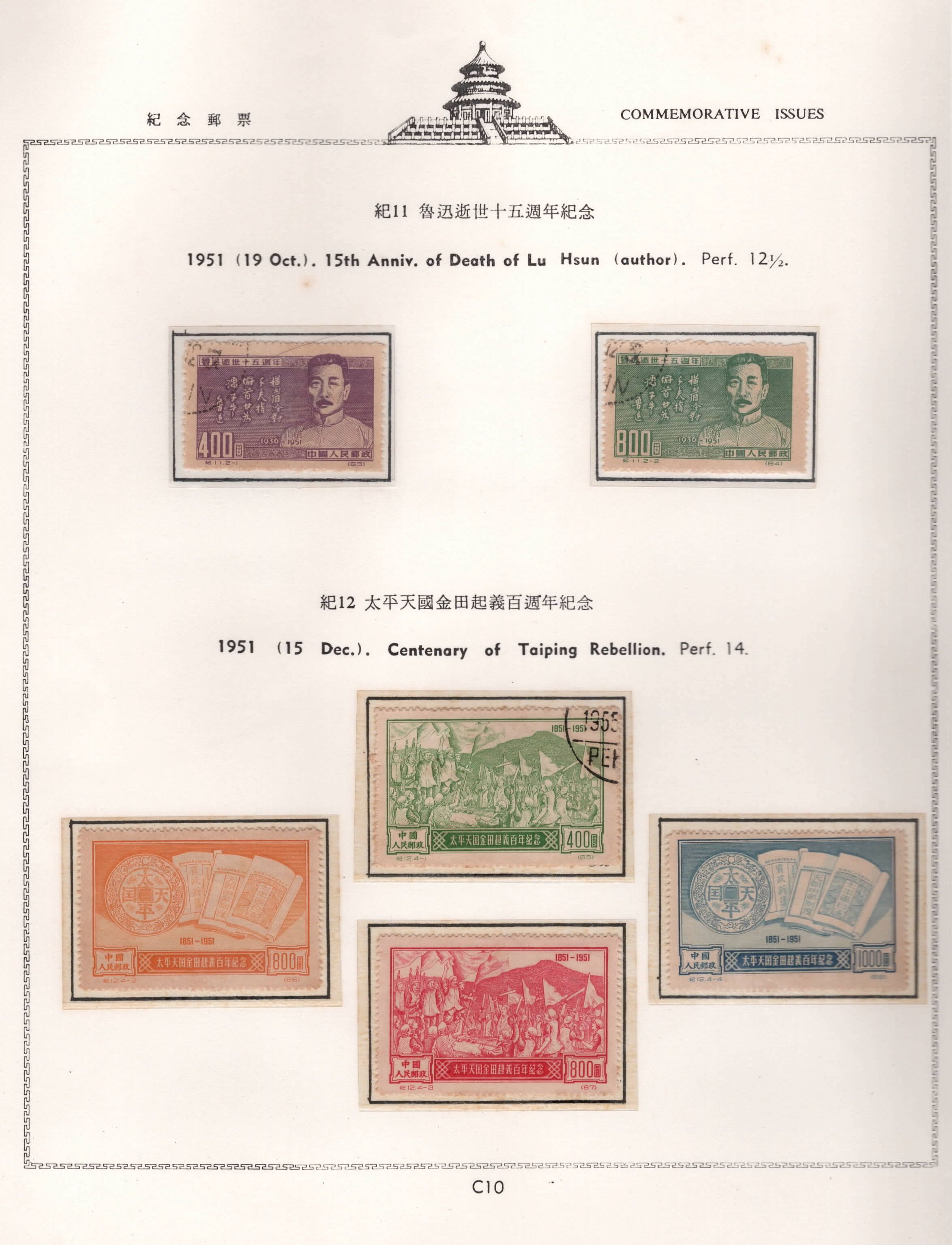 China 1951 15th Anniv. of Death of Lu Hsun (author) + Centenary of Taiping Rebellion - 6 used/ unused stamps(Image 1)