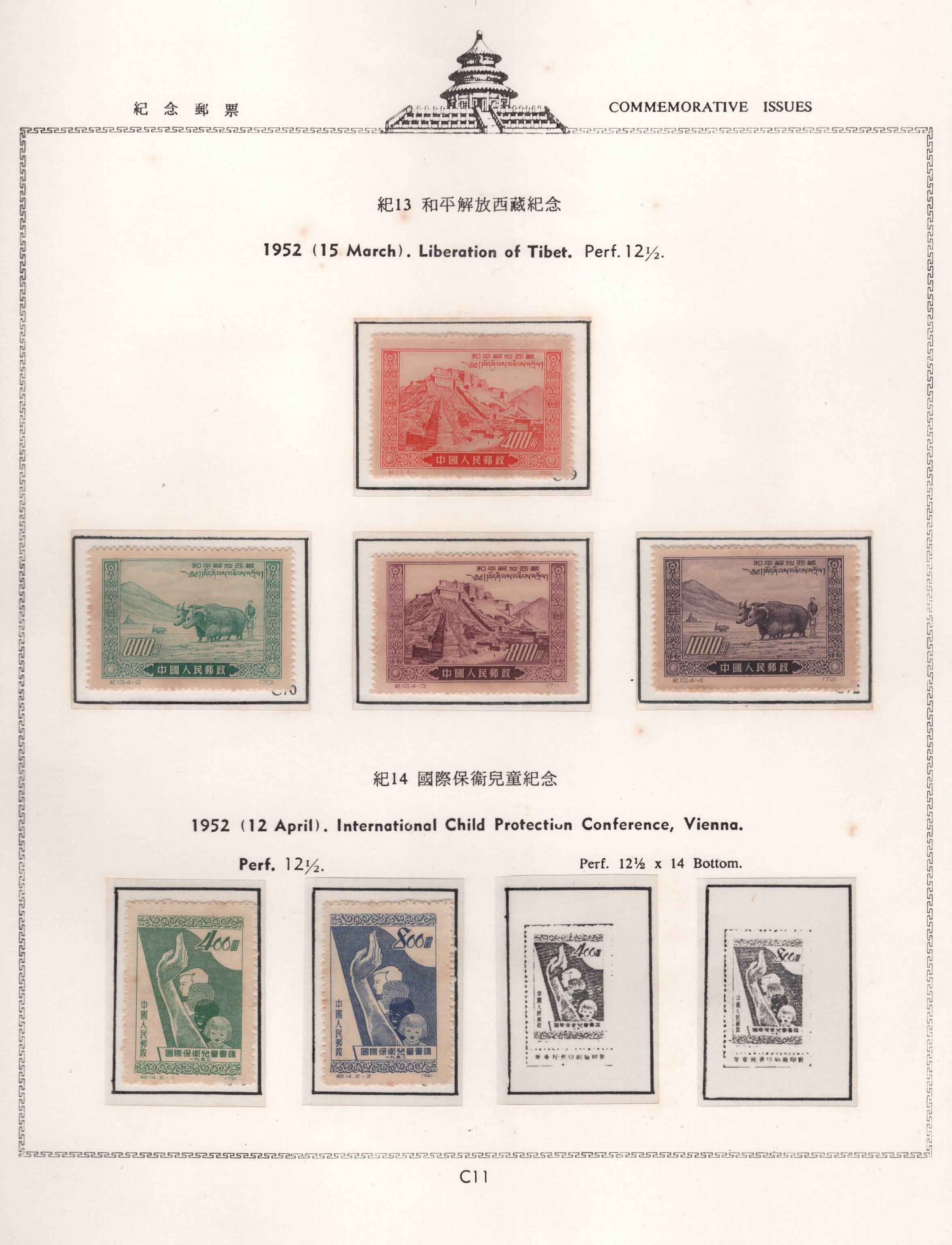 China 1952 Liberation of Tibet + International Child Protection Conference, Vienna - 6 unused stamps(Image 1)