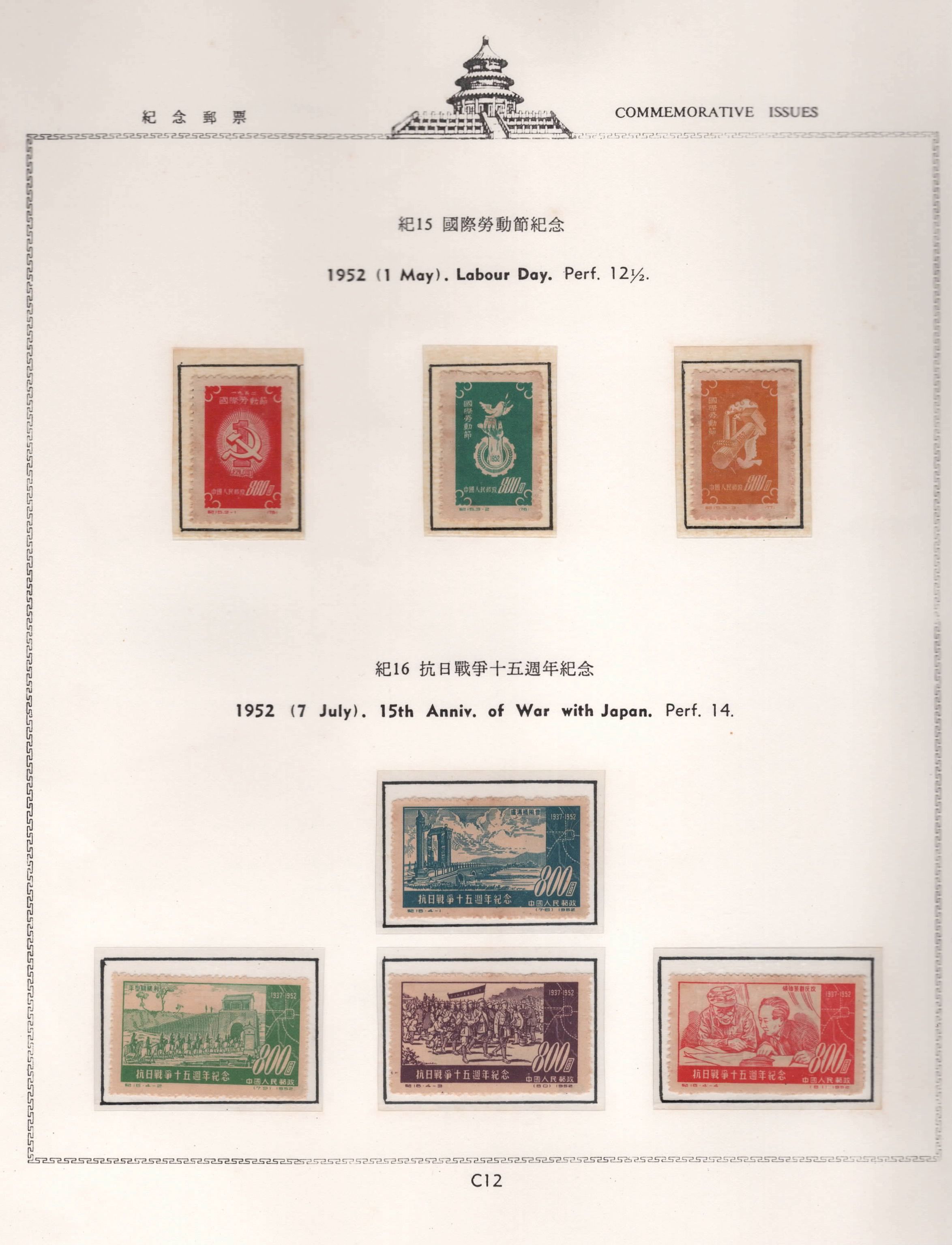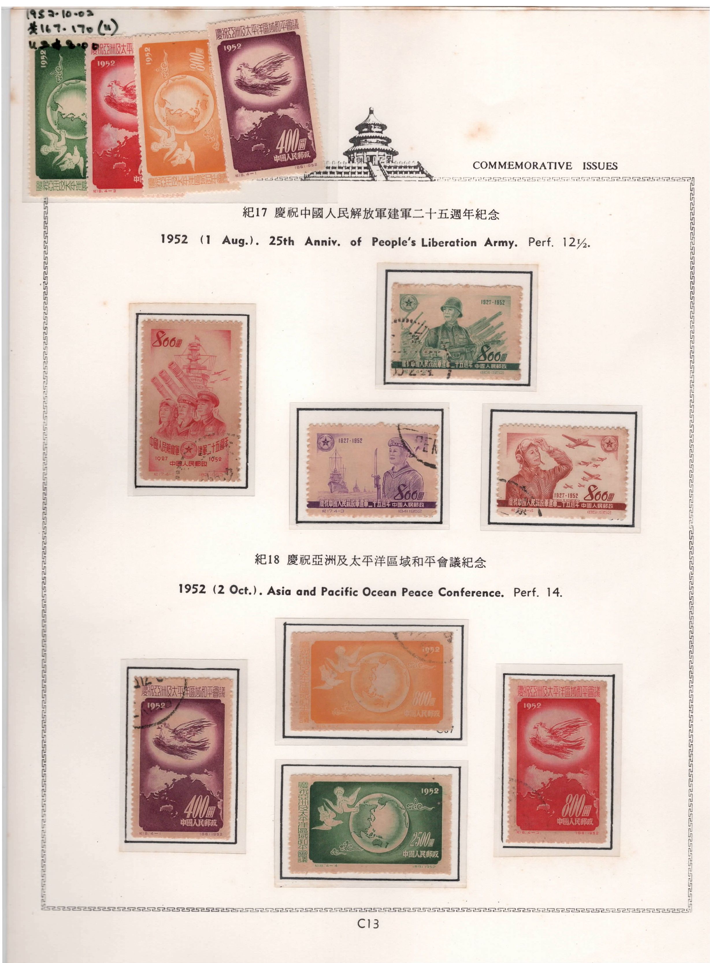 China 1952 25th Anniv. of People's Liberation Army + Asia and Pacific Ocean Peace Conference 12 used/ unused stamps(Image 1)
