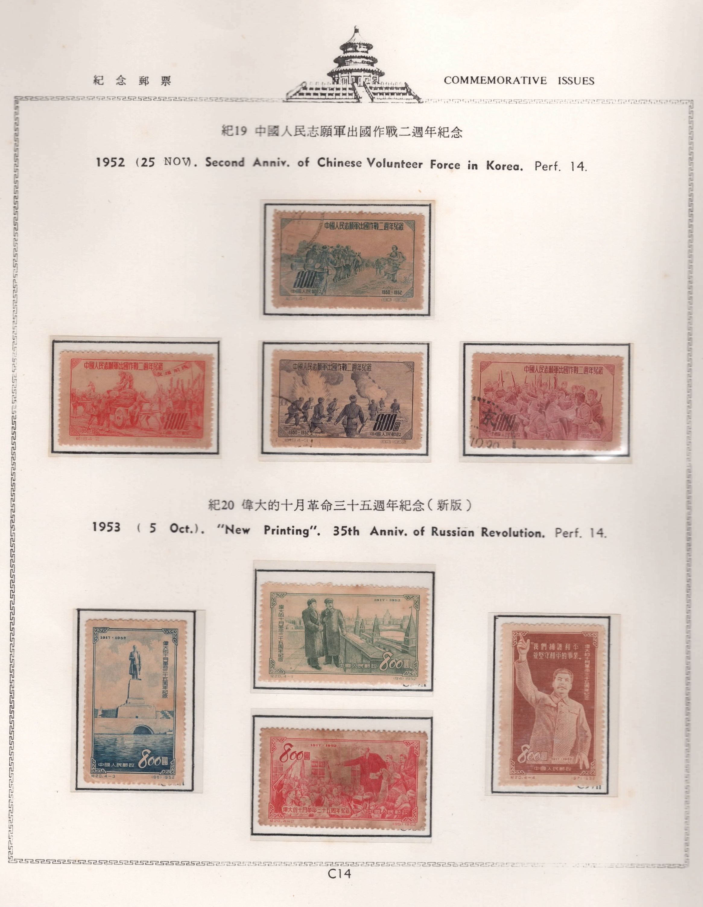 China 1952-53 Second Anniv. of Chinese Volunteer Force in Korea + "New Printing". 35th Anniv. of Russian Rerolution - 8