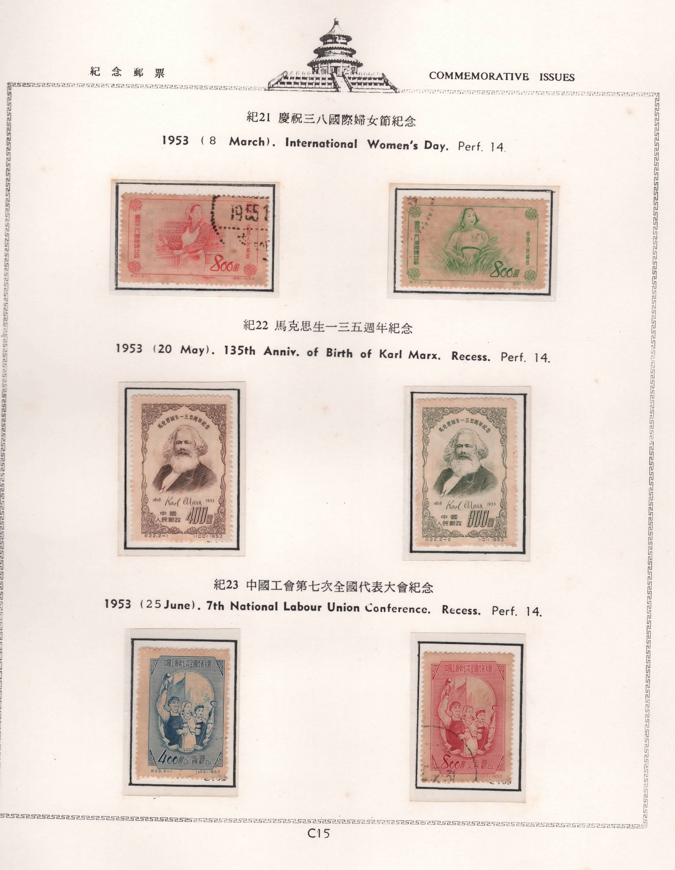 China 1953 International Women's Day + 135th Anniv. of Birth of Karl Marx + 7th National Labour Union Conference - 6