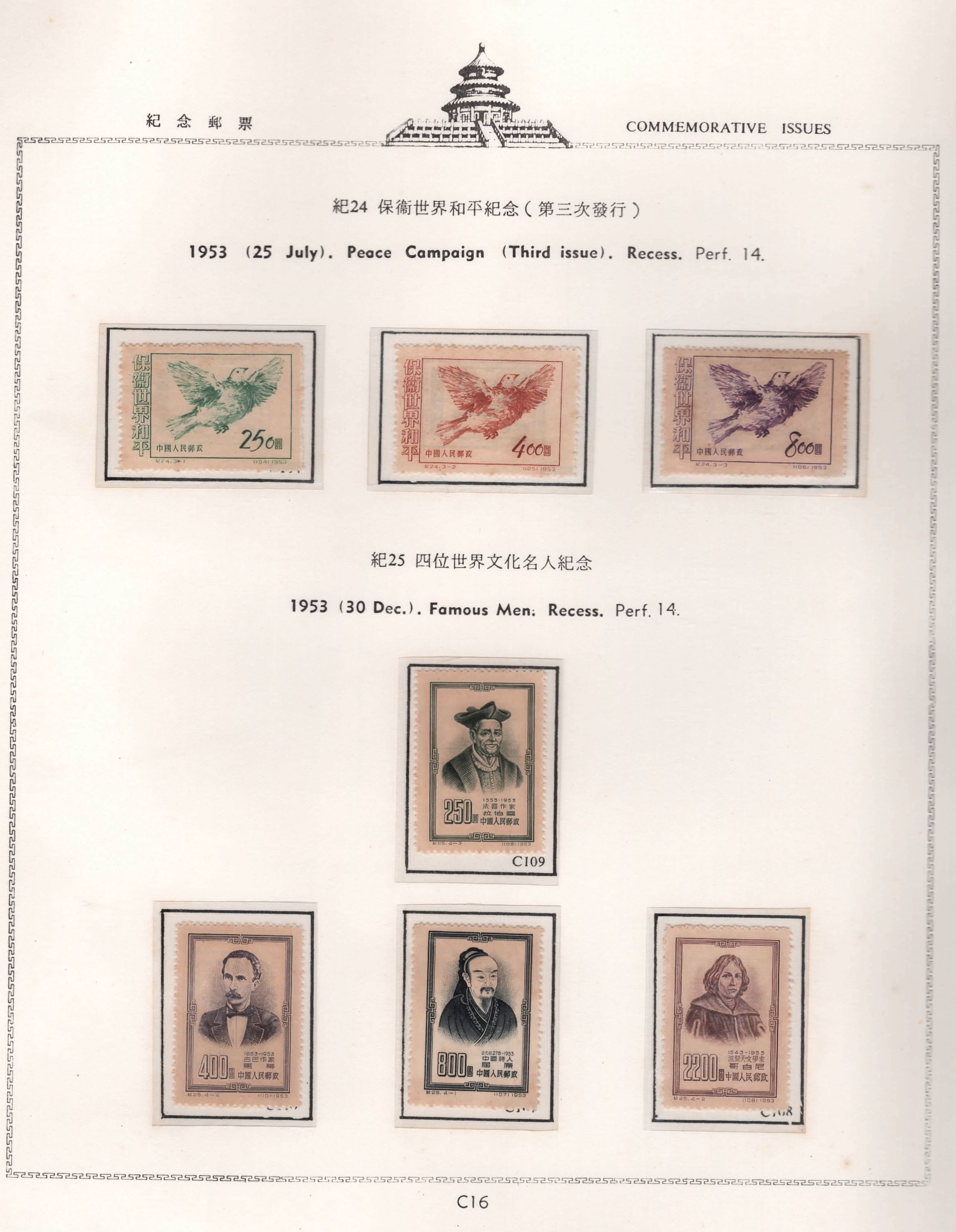 China 1953 Peace Campaign (Third issue) + Famous Men - 7 unused stamps(Image 1)