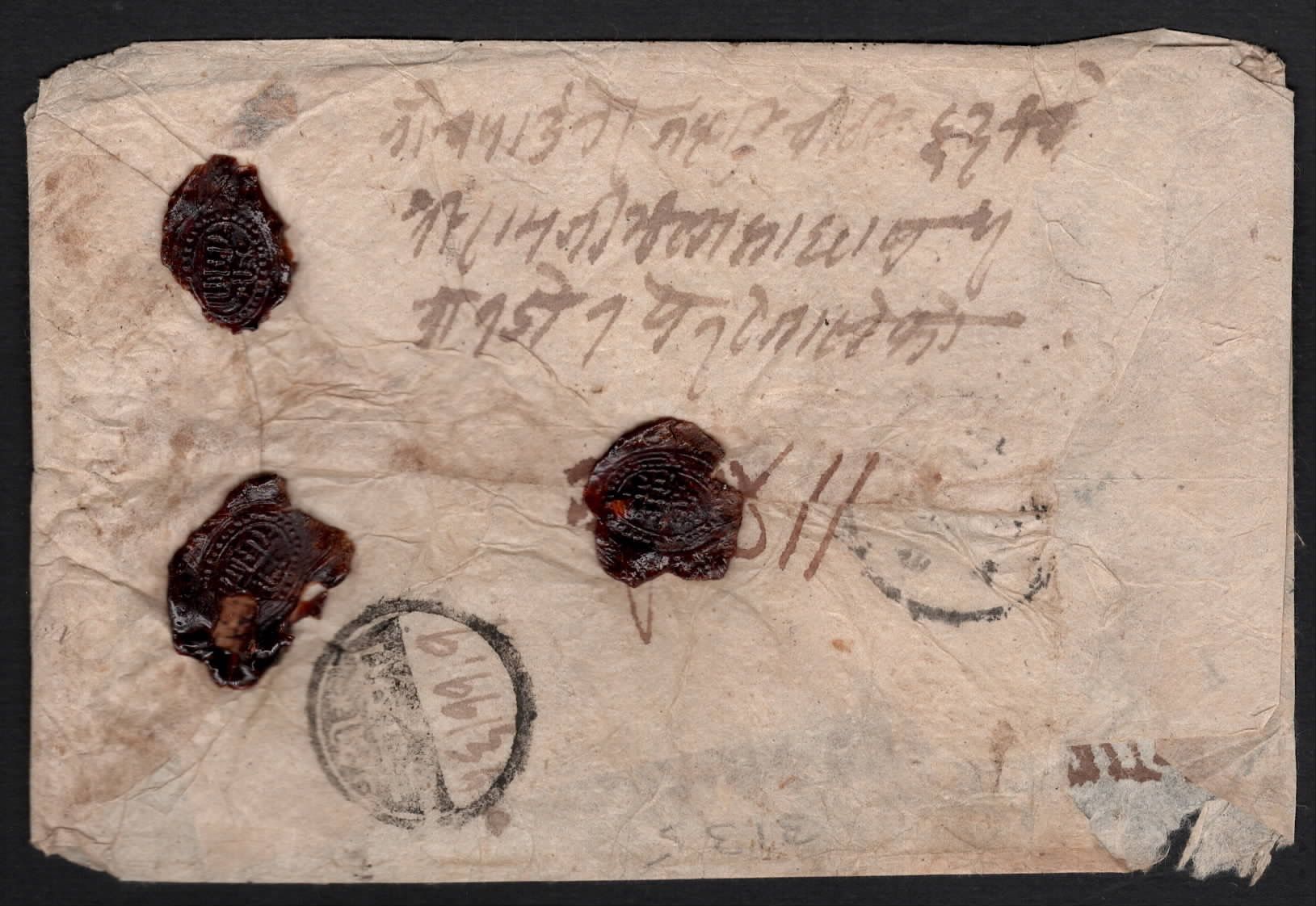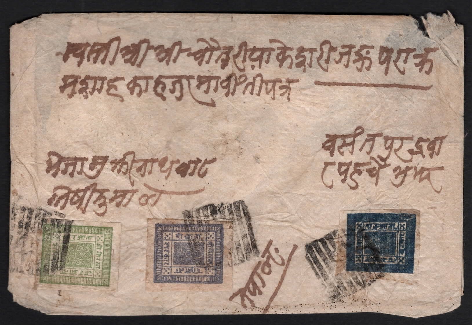 7101 imageNepal Classic Issue 3v franked cover 1a, 2as & 4as - Rare usage w/ wax seal on reverse(Image 1) (Image 2)