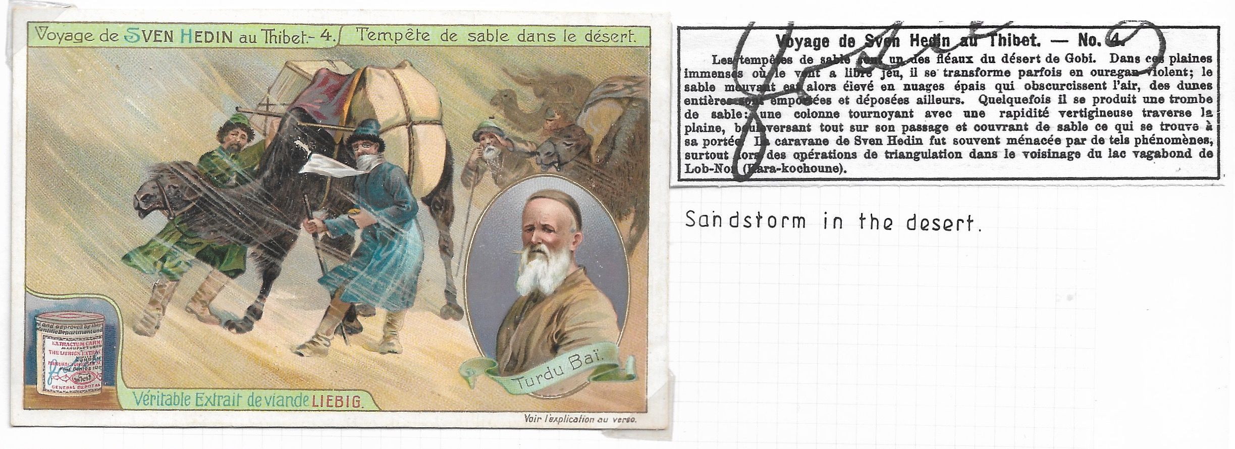7194 imageTibet 1885 Very Rare Sven Hedin's Voyage Card No. 4 "Sandstorm in the desert" PPC(Image 1) (Image 2)