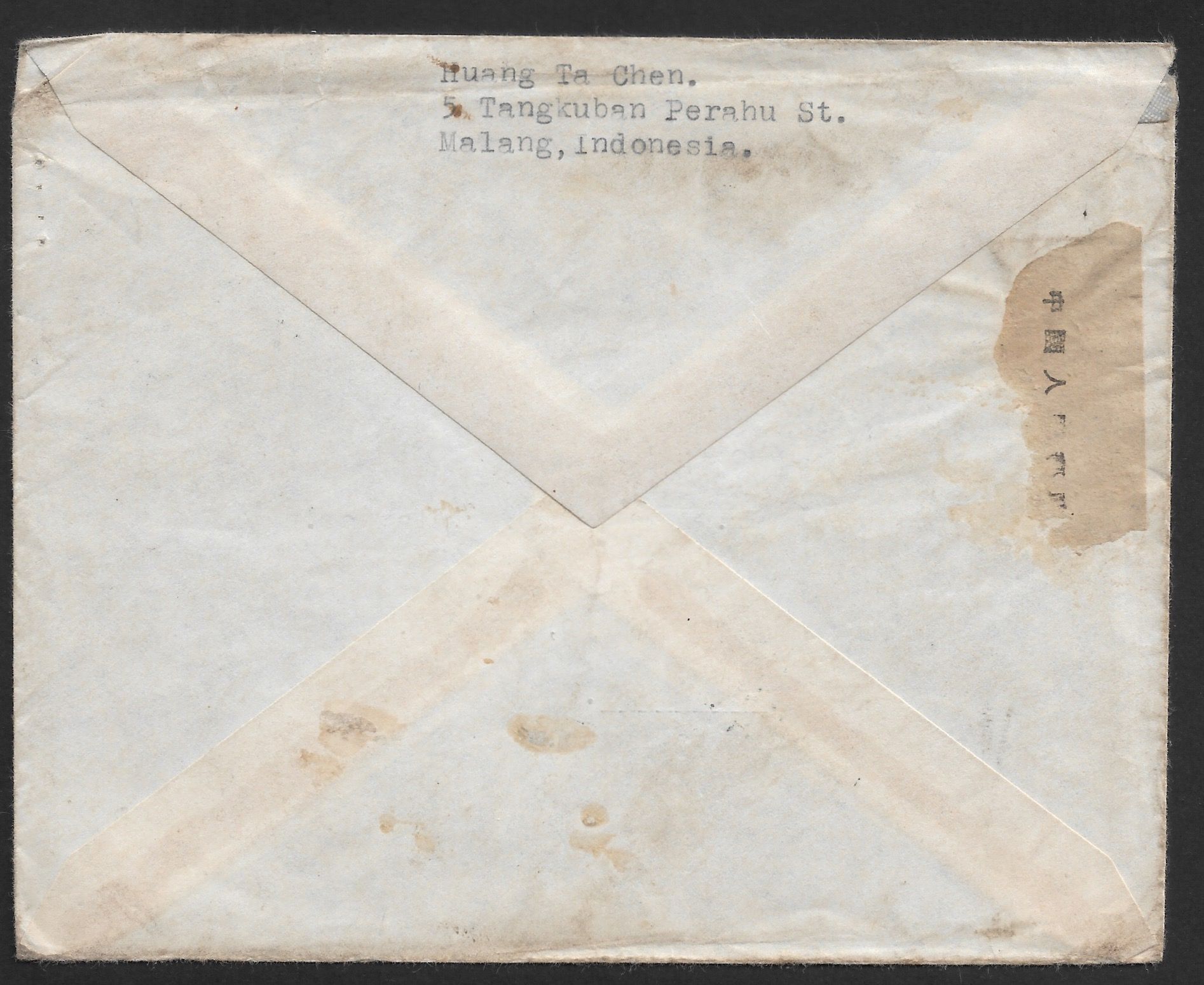 7198 imageIndonesia 1956 ONLY KNOWN very Attractive and interesting Registered postally used cover from Malang to Lhasa, Tibet via Yatung after China started handling all International mails - Ex. Flack(Image 1) (Image 2)
