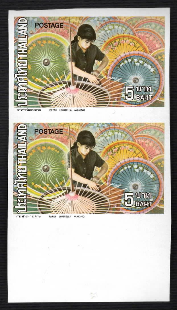 7193 imageThailand 1973 5b Handicrafts imperforate (Scott 665var.) with bottom selvage, vertical pair, original gum, MNH - Superb(Image 1) (Image 2)