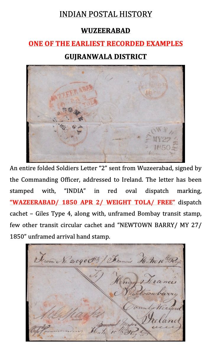 1133 imageIndia 1850 One of the Earliest Recorded Soldiers prestamp covers from WUZEERABAD (Giles #4) to Ireland(Image 1) (Image 2) (Image 3)