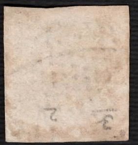 India 1854 1a Lithograph, Die II, SG 13, "C" Stone, showing multiple flaws - RED STROKE UNDER THE BUST EXTENDED TILL