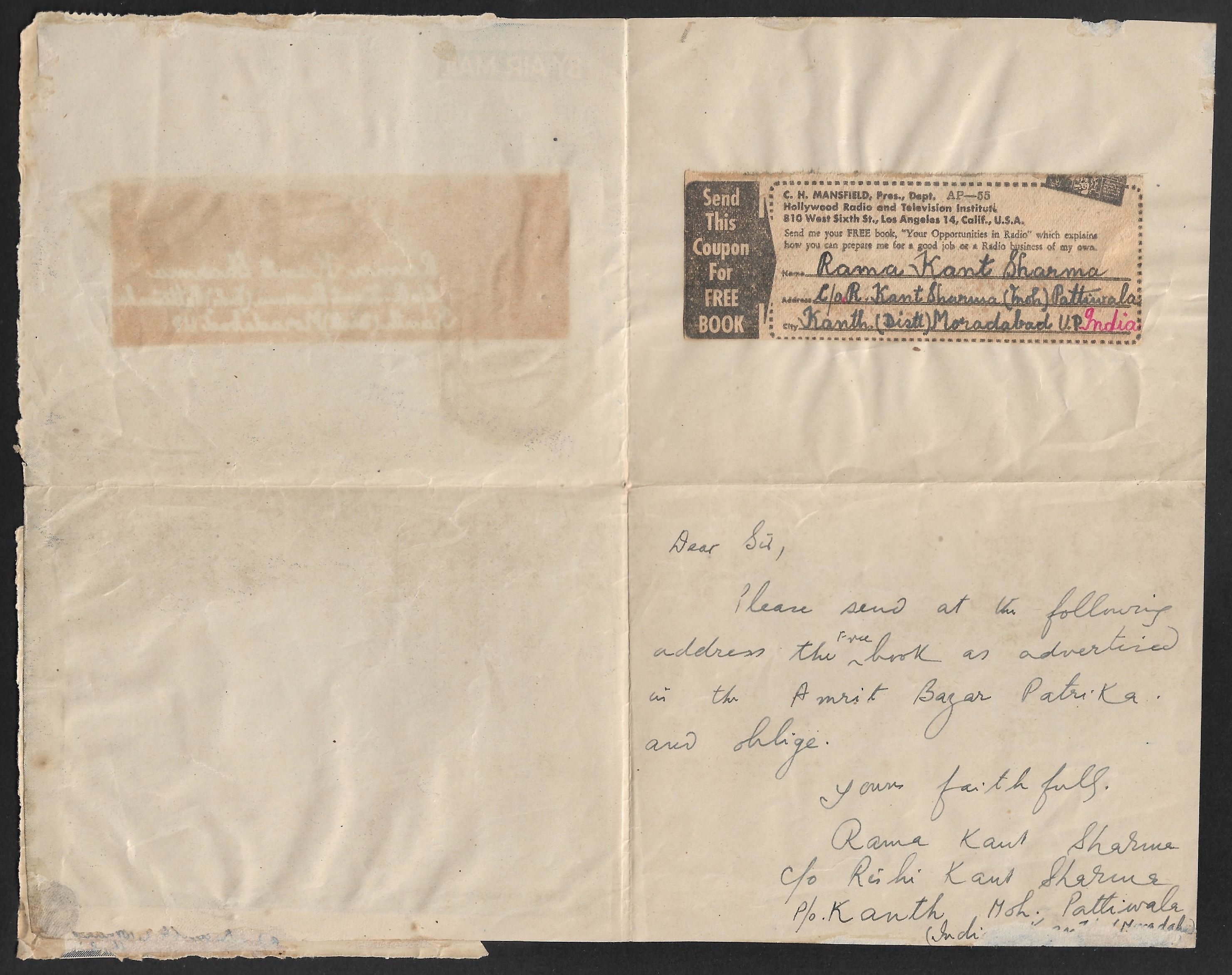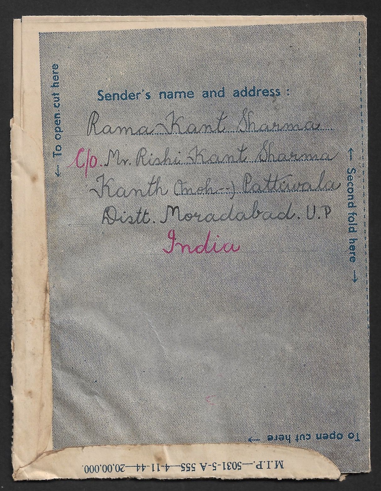 India 1948 Very Rare 4v Gandhi 1 1/2as from Kanth Moradabad Air letter, Taxed Postage Due 10 cents cachet, with
