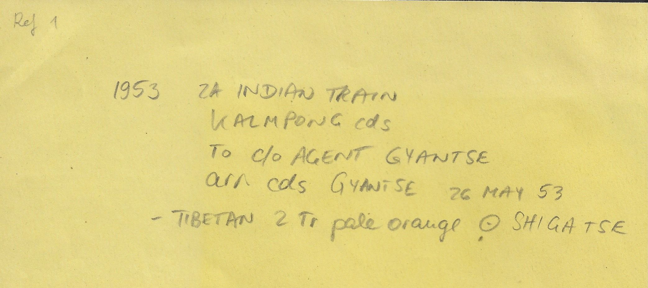 Tibet 1953 Very Rare cover sent from Kalimpong to Gyantse, additionally franked with 2tr Pale Orange pair,