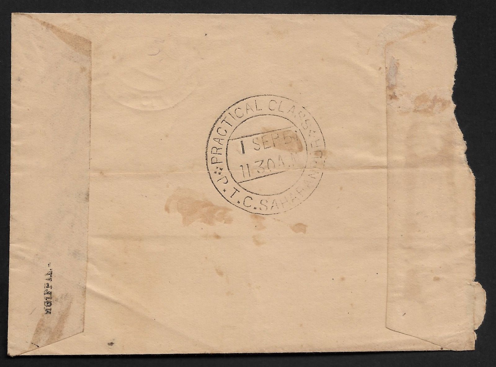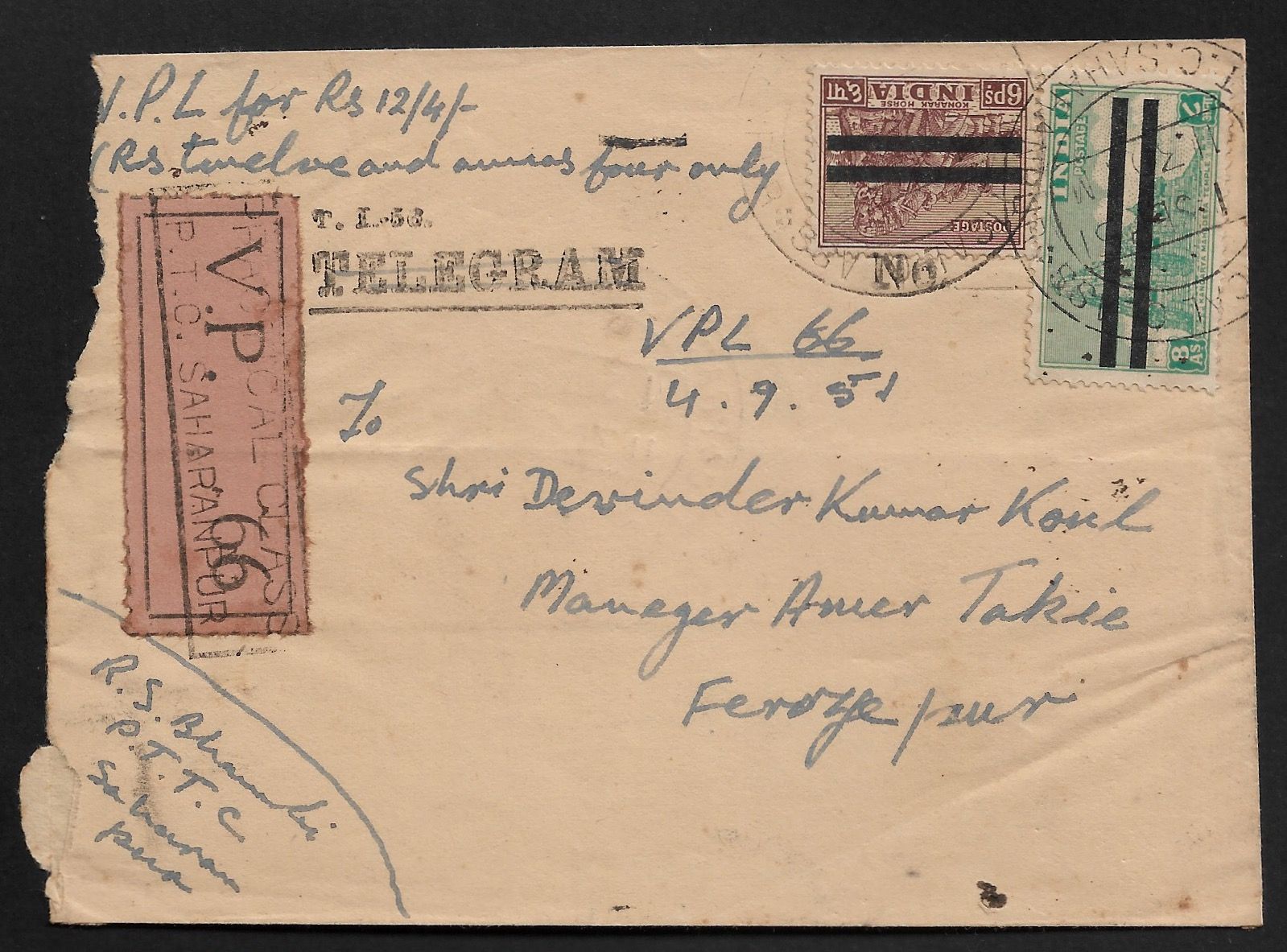 India 1951 2v Archeological Series Thick Bar cancelled VP Regd Telegram cover from Practical Class at