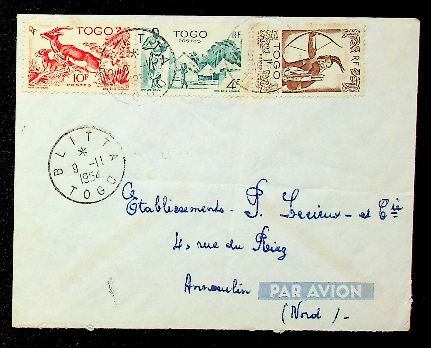 5039 imageFrench West Africa Togo 1954 3v airmail cover from Blita via Lome to France(Image 1) (Image 2)