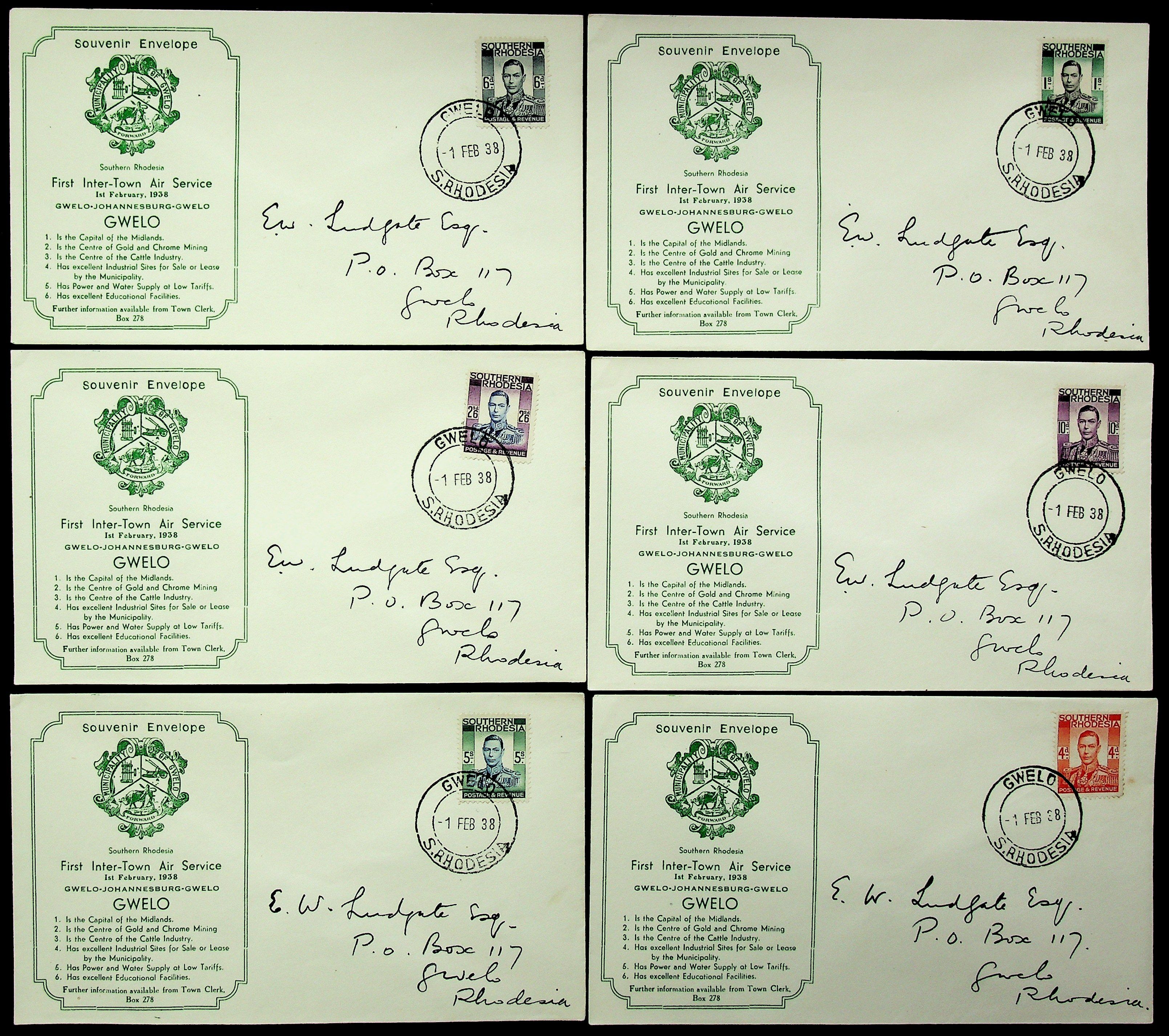 5096 imageSouthern Rhodesia 1938 1st Inter-Town Air Service Gwelo-Johannesburg-Gwelo 12 covers w/ KGVI 12v(Image 1) (Image 2) (Image 3)