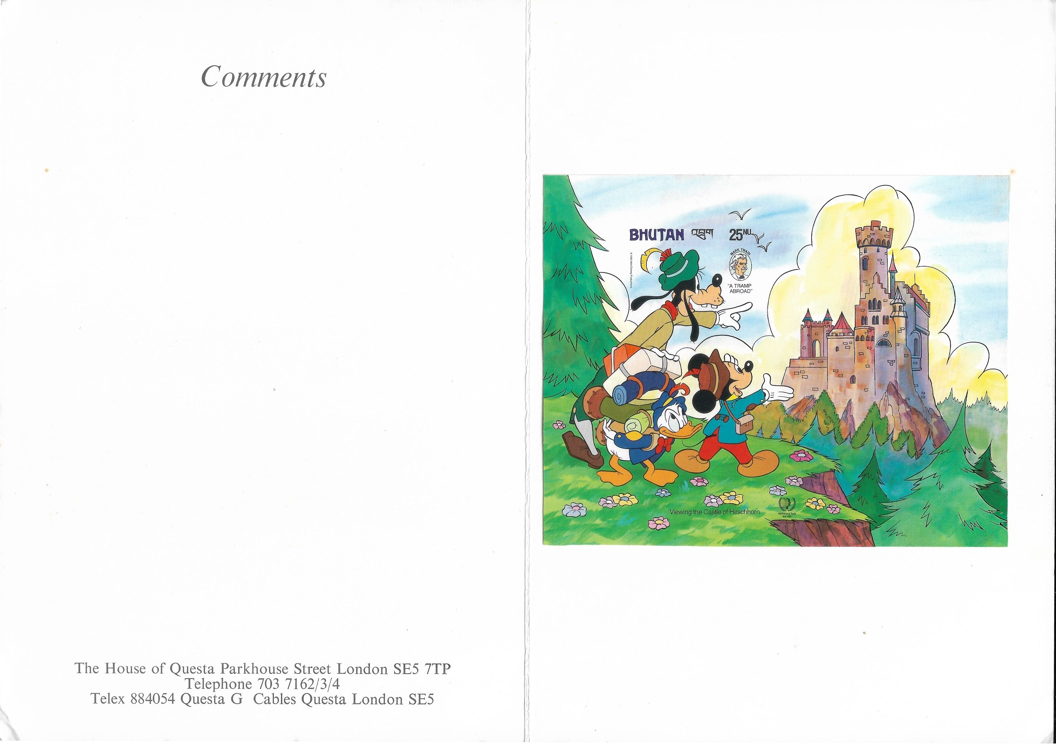 7017 imageBhutan 1995 25Nu very rare Unique Mark Twain Mickey Mouse, Donald Duck & Goofy, House of Questa Proof on card(Image 1) (Image 2)