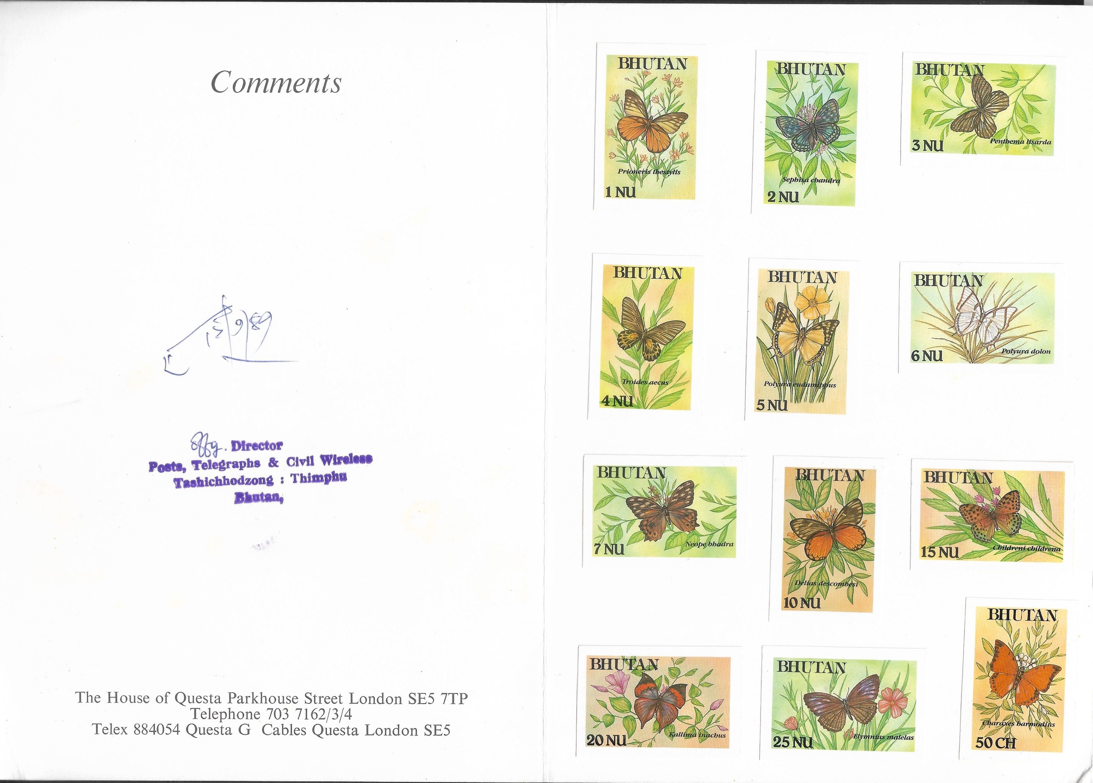 7019 imageBhutan 1989 very rare UNIQUE 12v Proofs on Butterfly - Affixed on House of Questa Archival card - Remarkable(Image 1) (Image 2)