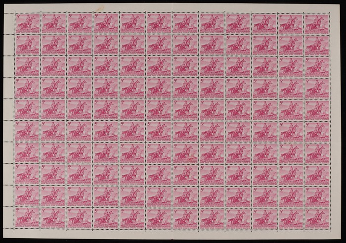 deep purple, sheet of 120. Upper selvedge tone spots, stamps fresh MNH. ACSC 346 cat $120. (Image1)