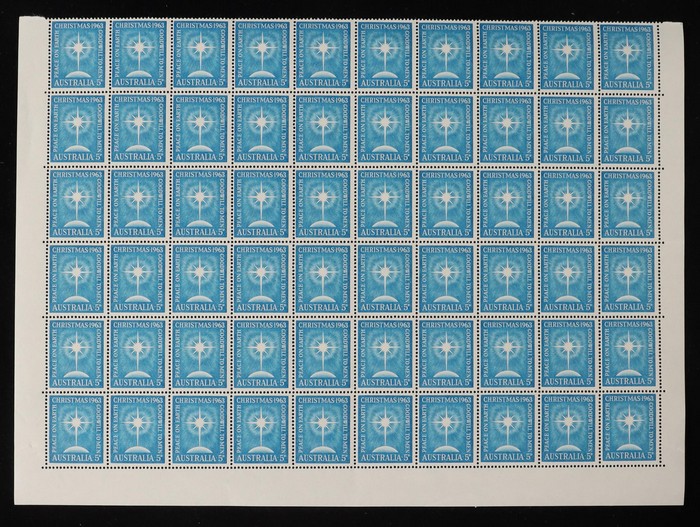 cnr. 1963 Christmas lwr half sheet of 60. All VF MNH. ACSC cat $435. (224). (Image1)