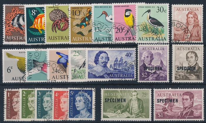 75c-$4 opt SPECIMEN, VF fresh MNH, plus lower values 1c-50c CTO with UH gum, 5c QEII replaces 5c Bird, this being 1967 issue set. ACSC ex 436-66x cat $195. (22) (Image1)